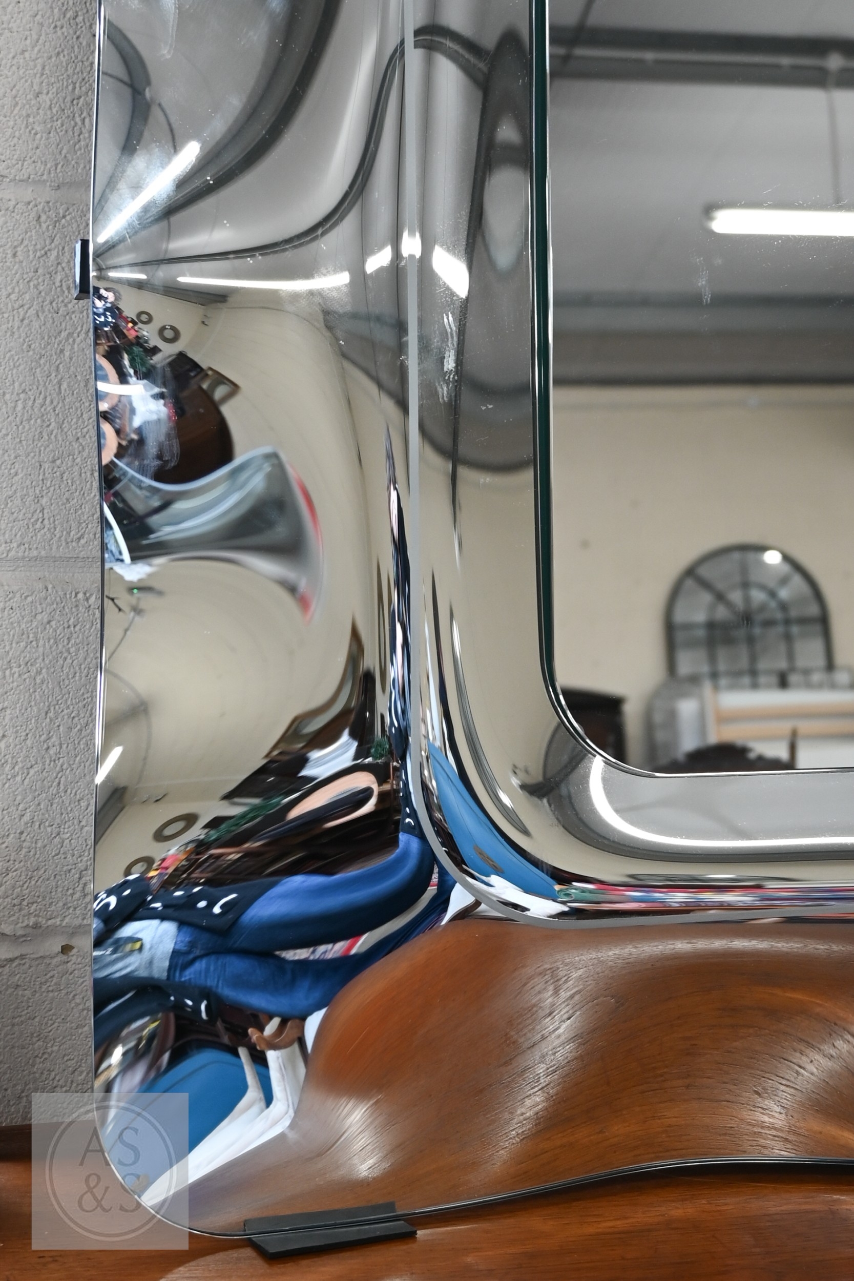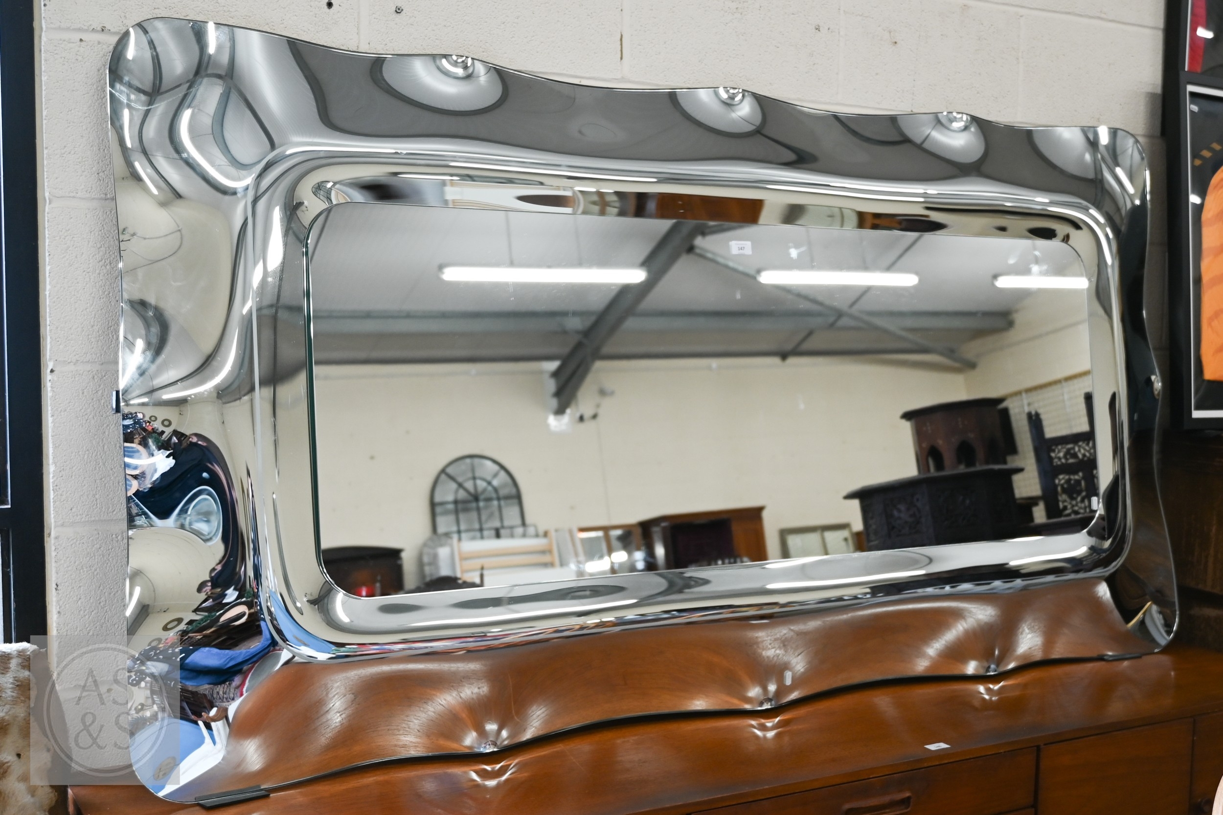 A large contemporary Italian 'Fiam' wavy edge mirror, 200 x 106 cm