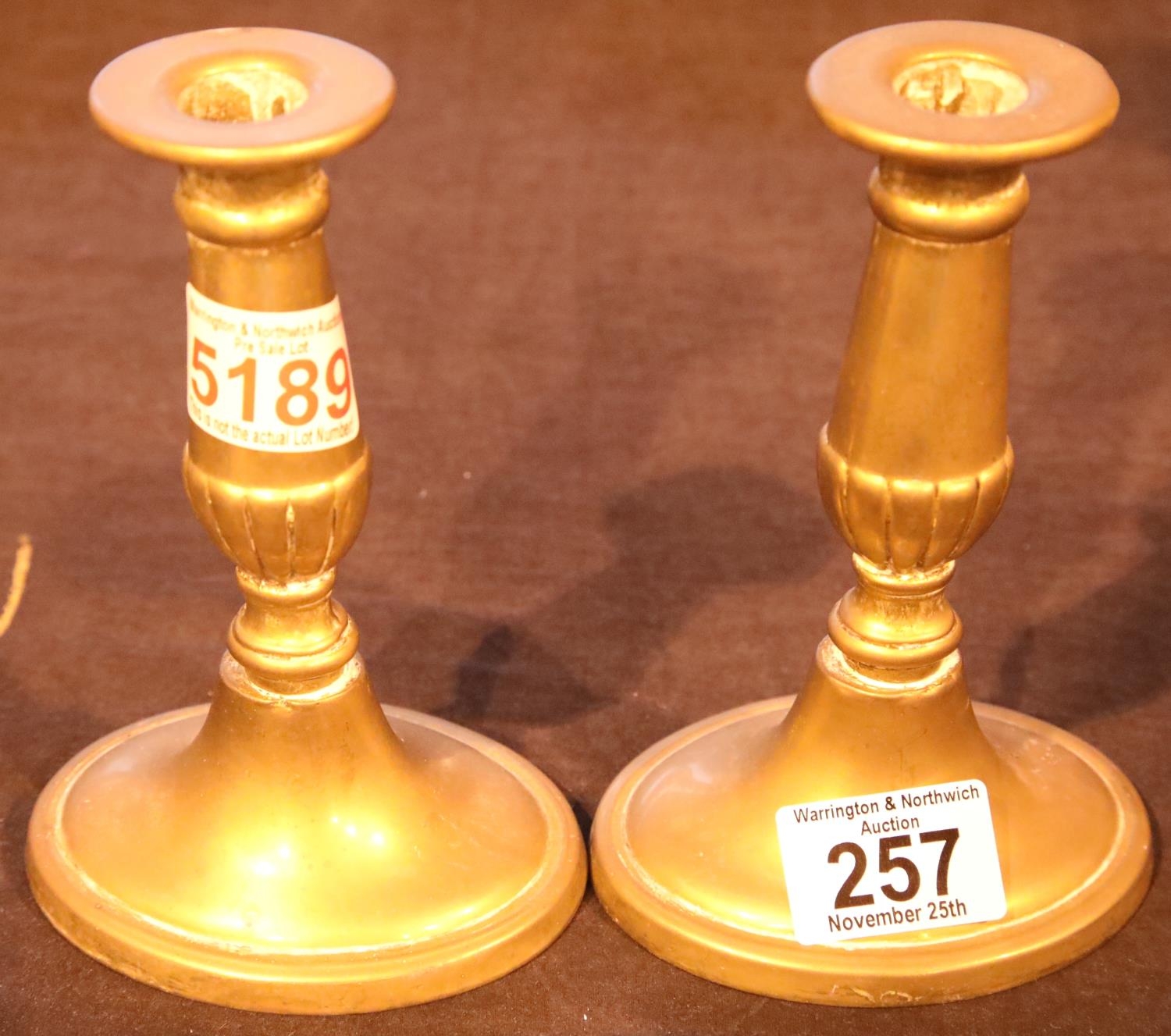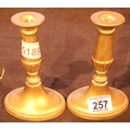 Pair of heavy brass candlesticks, H: 15 cm. Not available for in-house P&P