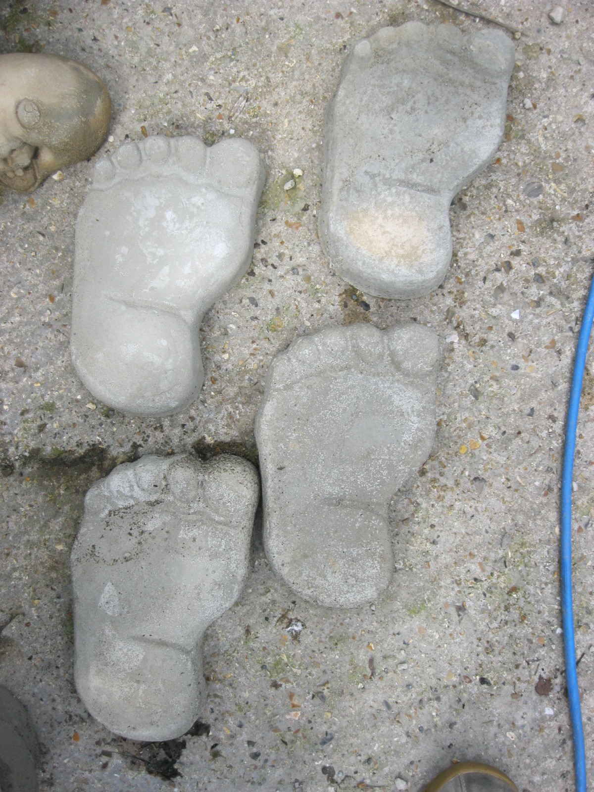 A set of 4 stoneware stepping stones in the shape of feet