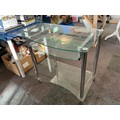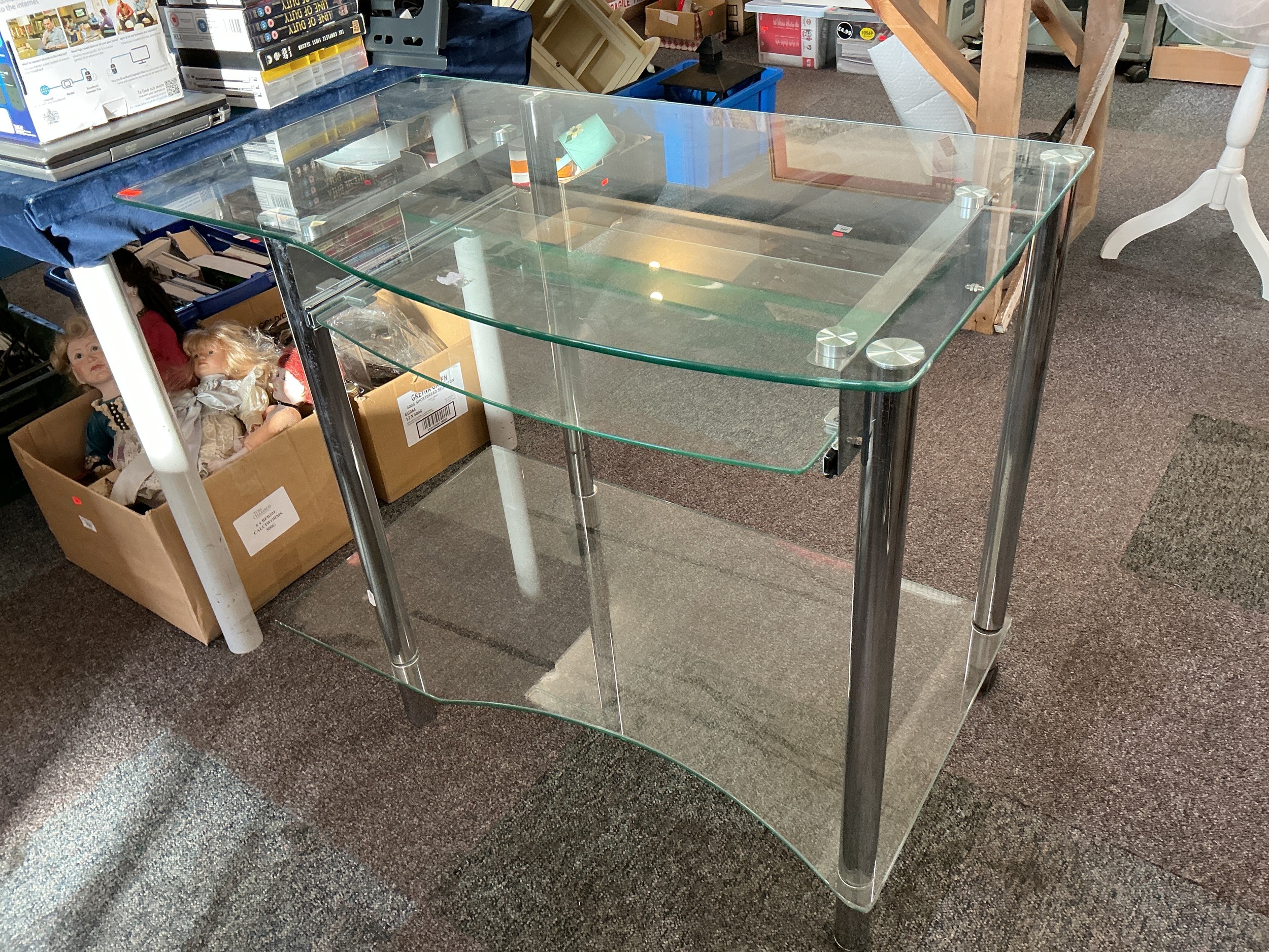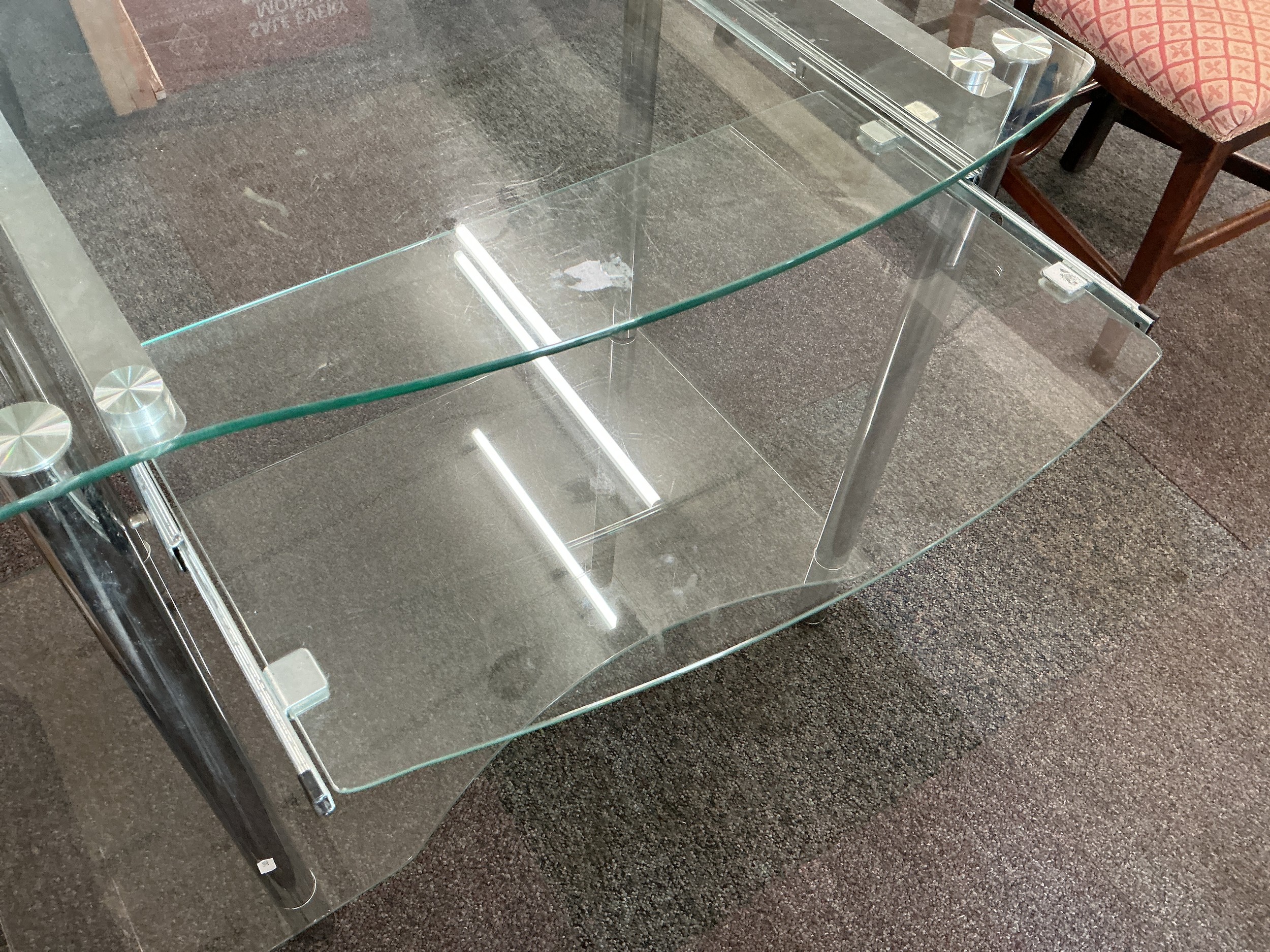 Modern Glass and Chrome Computer Desk complete with Glass Sliding Keyboard Shelf on Castors 89x74x54cm, Local Delivery Can Be Arranged For a Fee