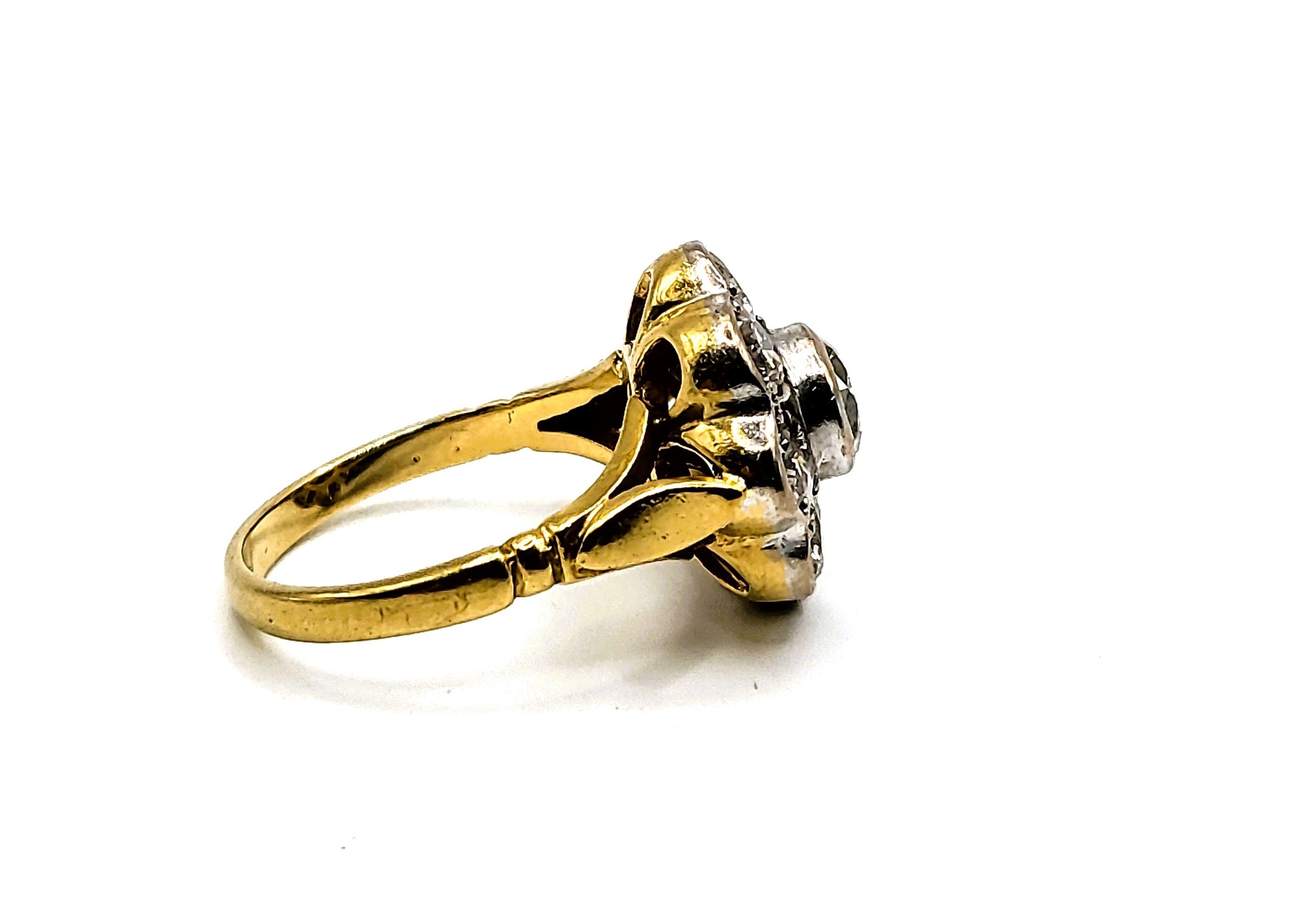 An 18ct yellow gold nine stone diamond daisy ring. Central stone approx. 1.0ct approx. 3.5+tcw. 8.7gms size N 1/2. With papers.