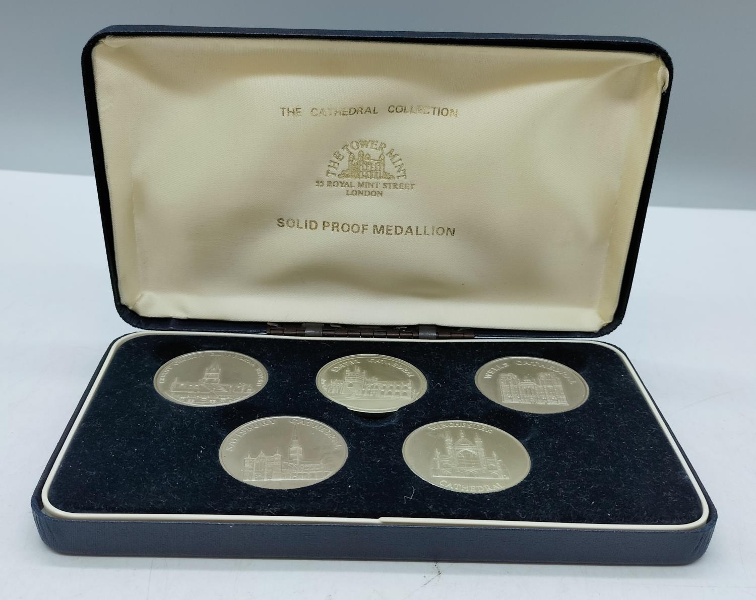 The Tower Mint Solid Proof Boxed Set of 5 'The Cathedral Collection' Medallions, in Original Case.