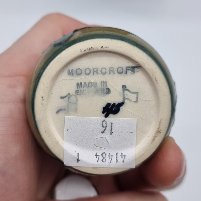 A Moorcroft ' Cluny' pattern vase, by Sally Tuffin, 13cm high, boxed.