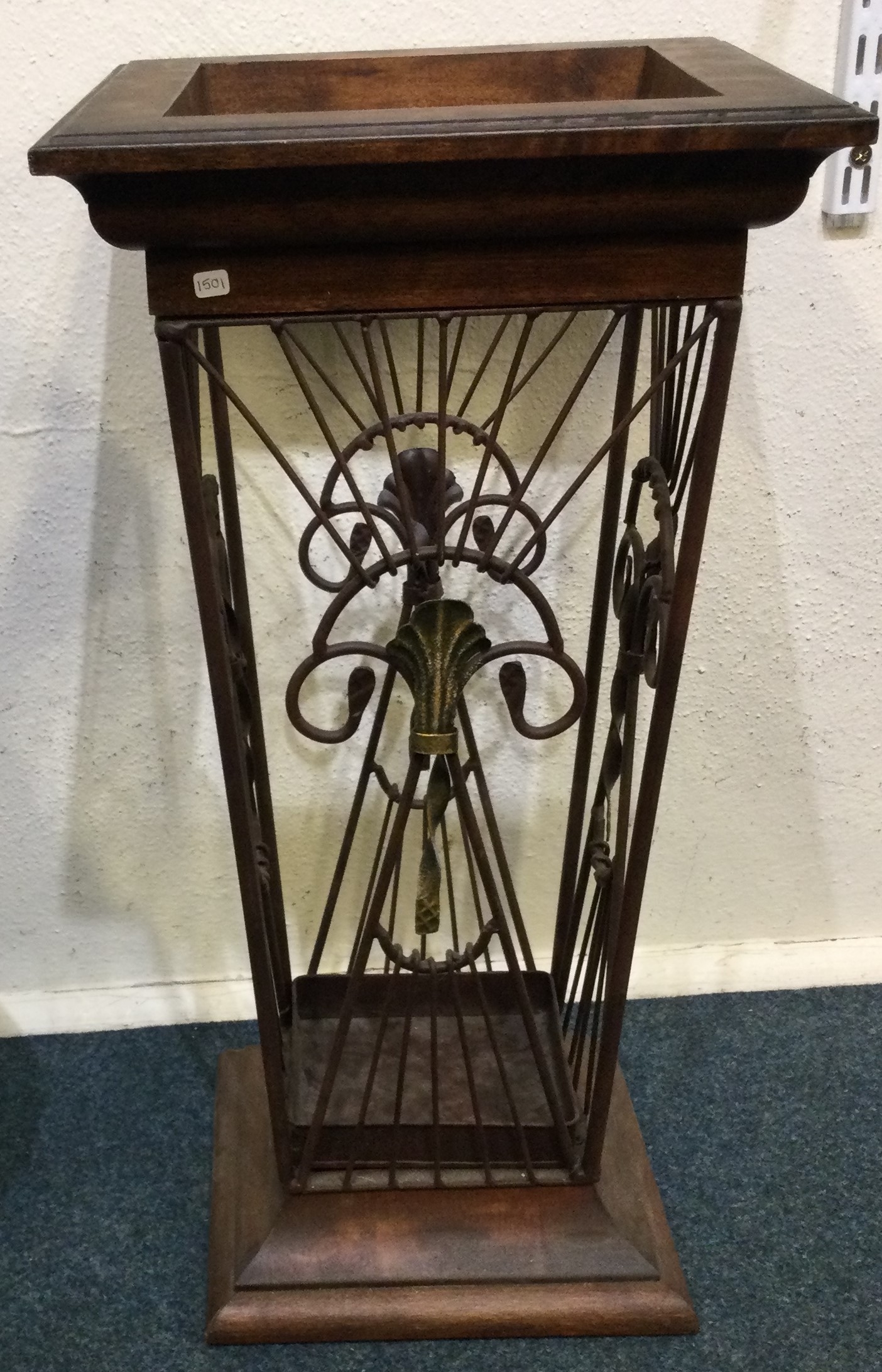 An unusual cast iron mounted stick stand. Est. £20 - £30.