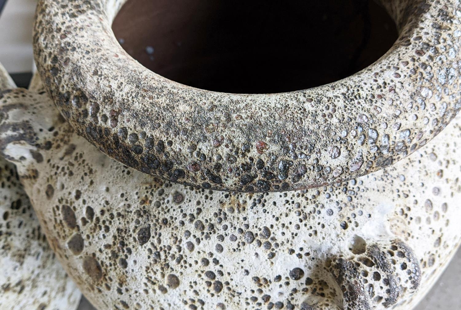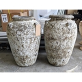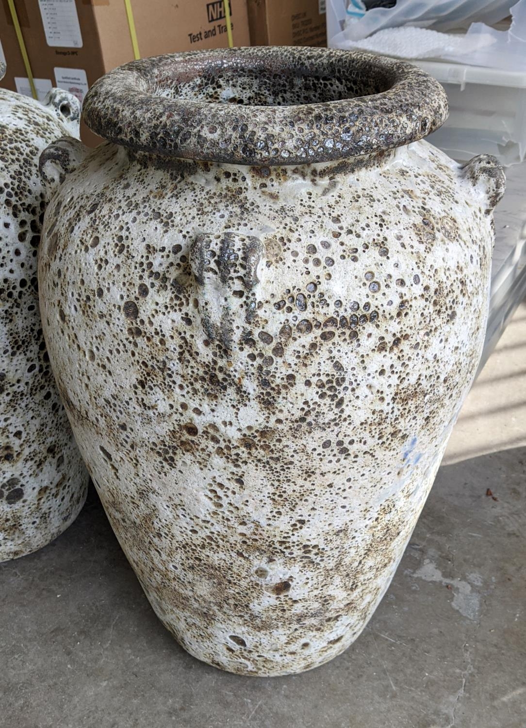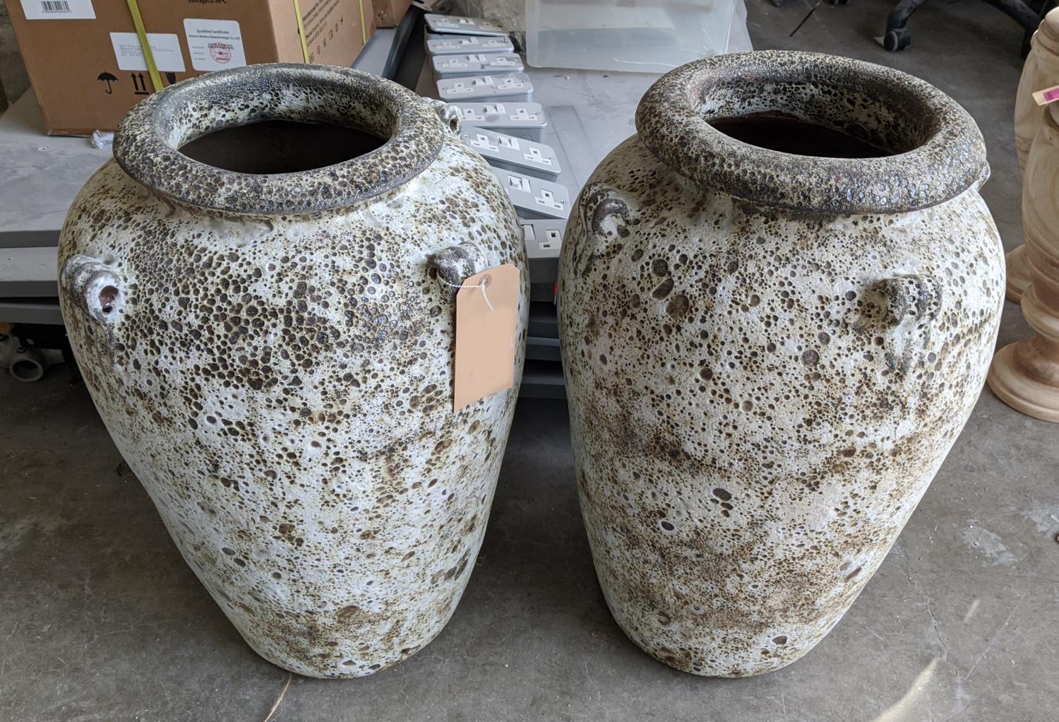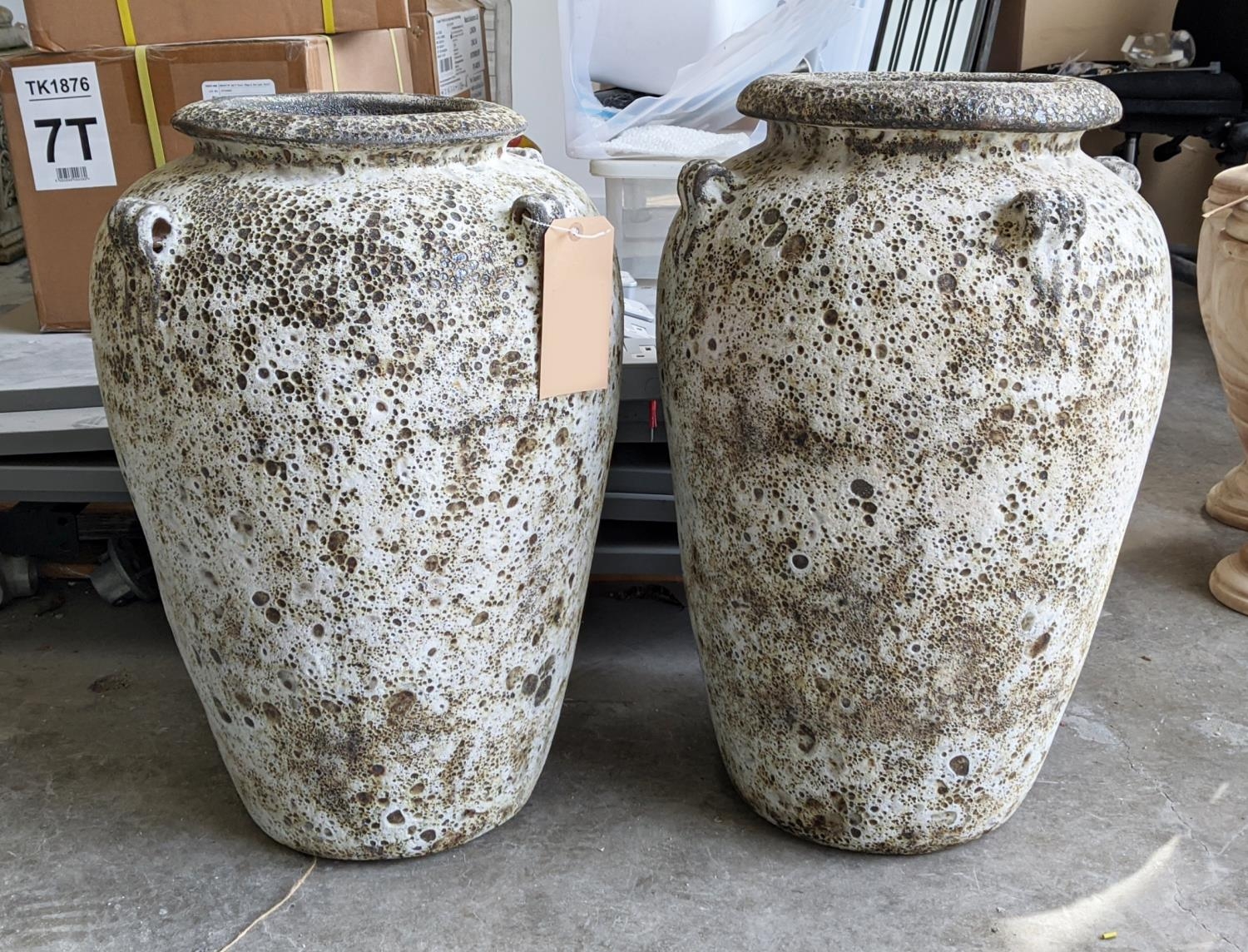 AMPHORA URNS, a pair, in a vintage style white crackled finish, 64cm H x 40cm. (2)