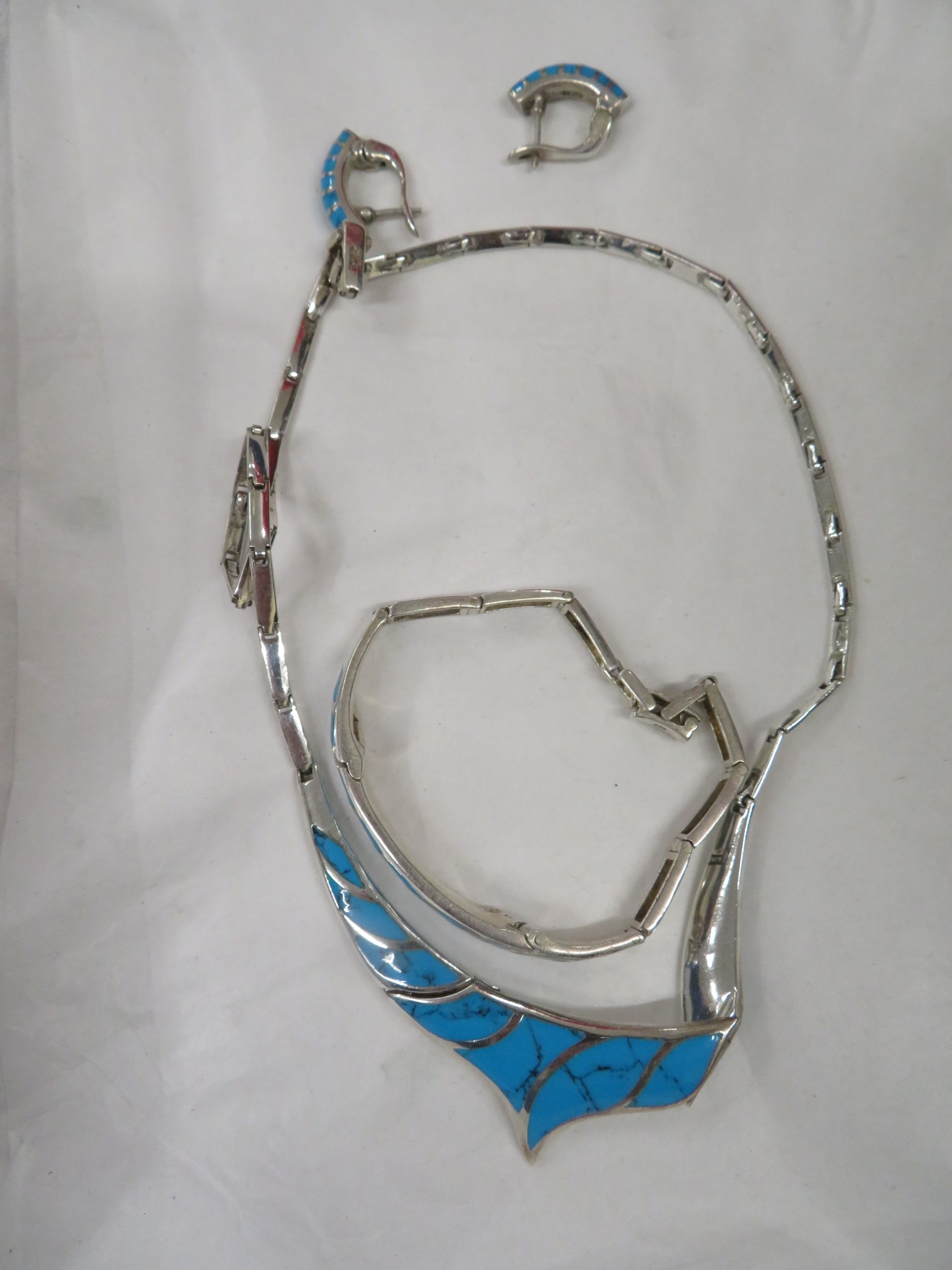 Silver and turquoise necklace, bracelet and matching earring...