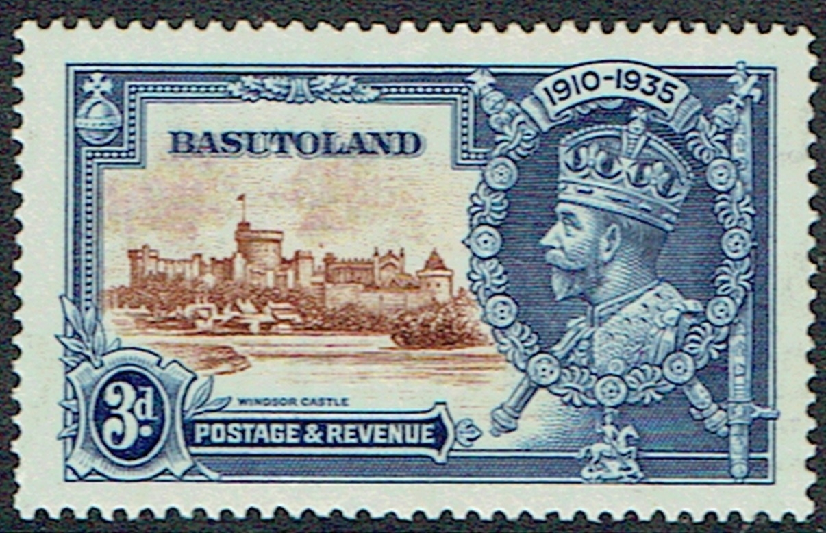 BASUTOLAND - 1935 Silver Jubilee 3d brown and deep blue mounted mint (couple of gum spots) showing dot by chapel variety, SG 13g.