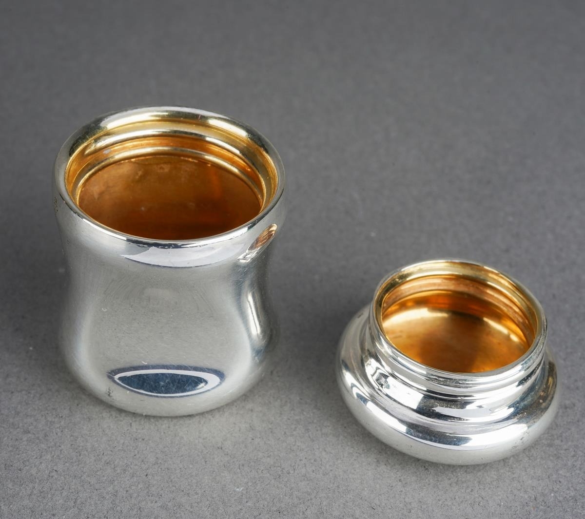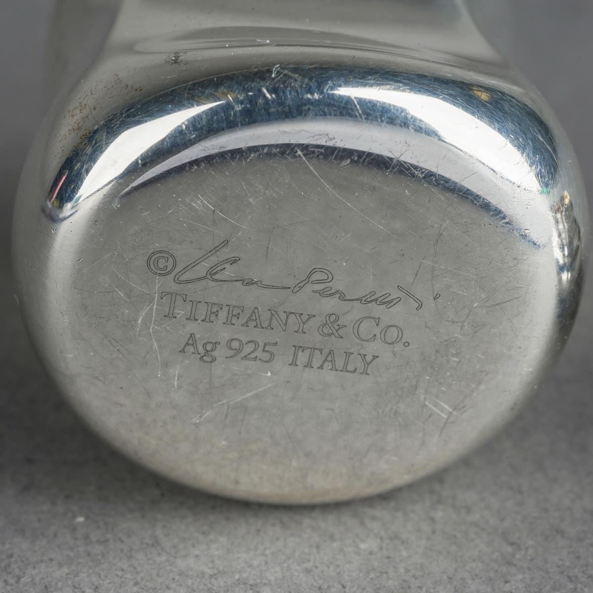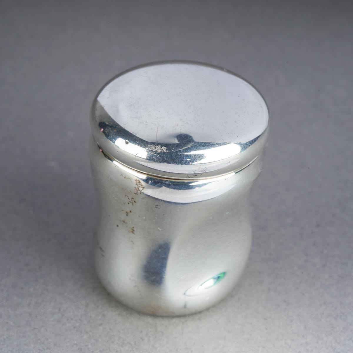 A Tiffany & Co Elsa Peretti silver Thumbprint pill box with screw cover, gilt interior, the base stamped with facsimile signature and "TIFFANY & CO. Ag 925 ITALY", height 3.8cm approx, 29.3 grams approx (1)