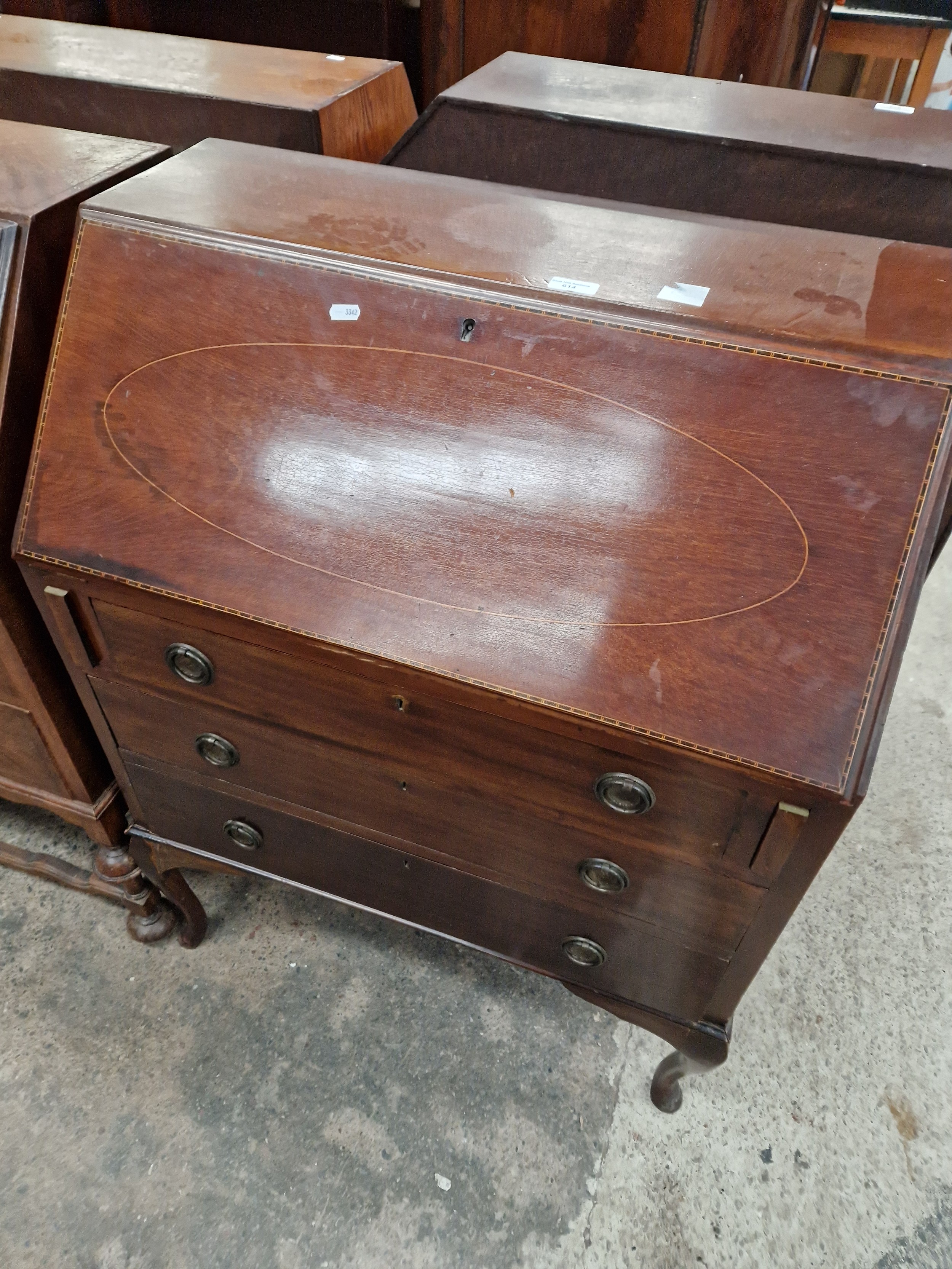 A vintage inlaid 3 drawer bureau