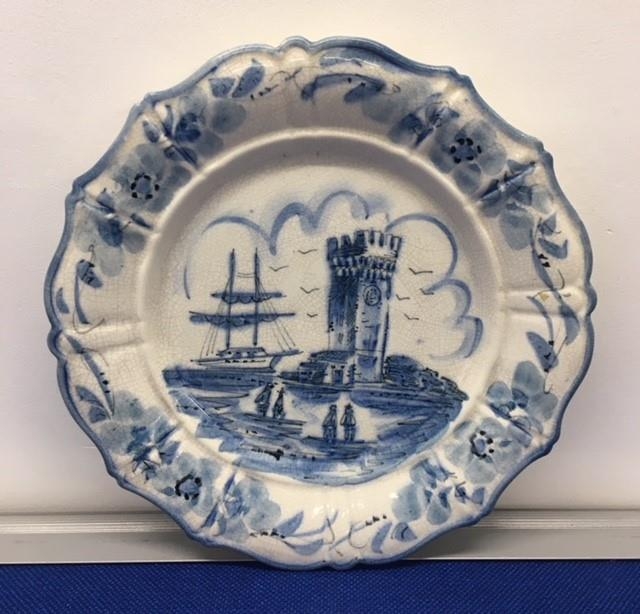 An Italian, blue, seaside scene plate. Inscribed "Vecchia Sevona".
