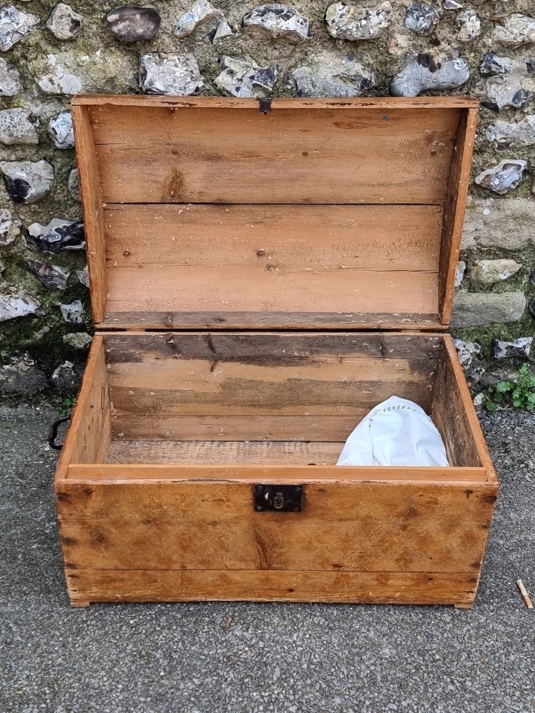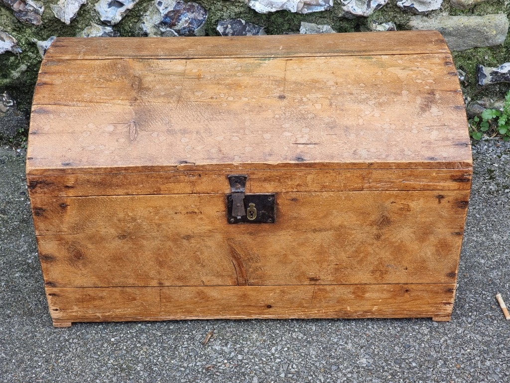 A Victorian pine dome top trunk, 71cm wide.
