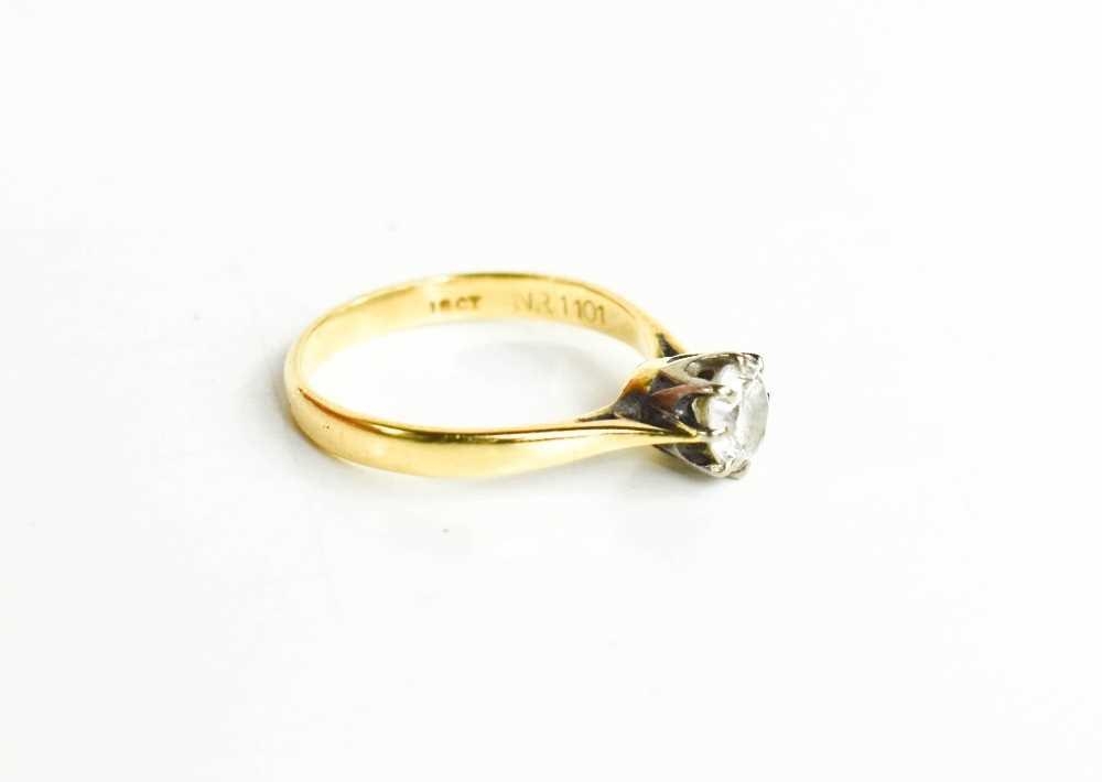 An 18ct gold and diamond solitaire ring, the diamond of approximately 0.5ct, 5.1mm diameter, size K, 2.3g.