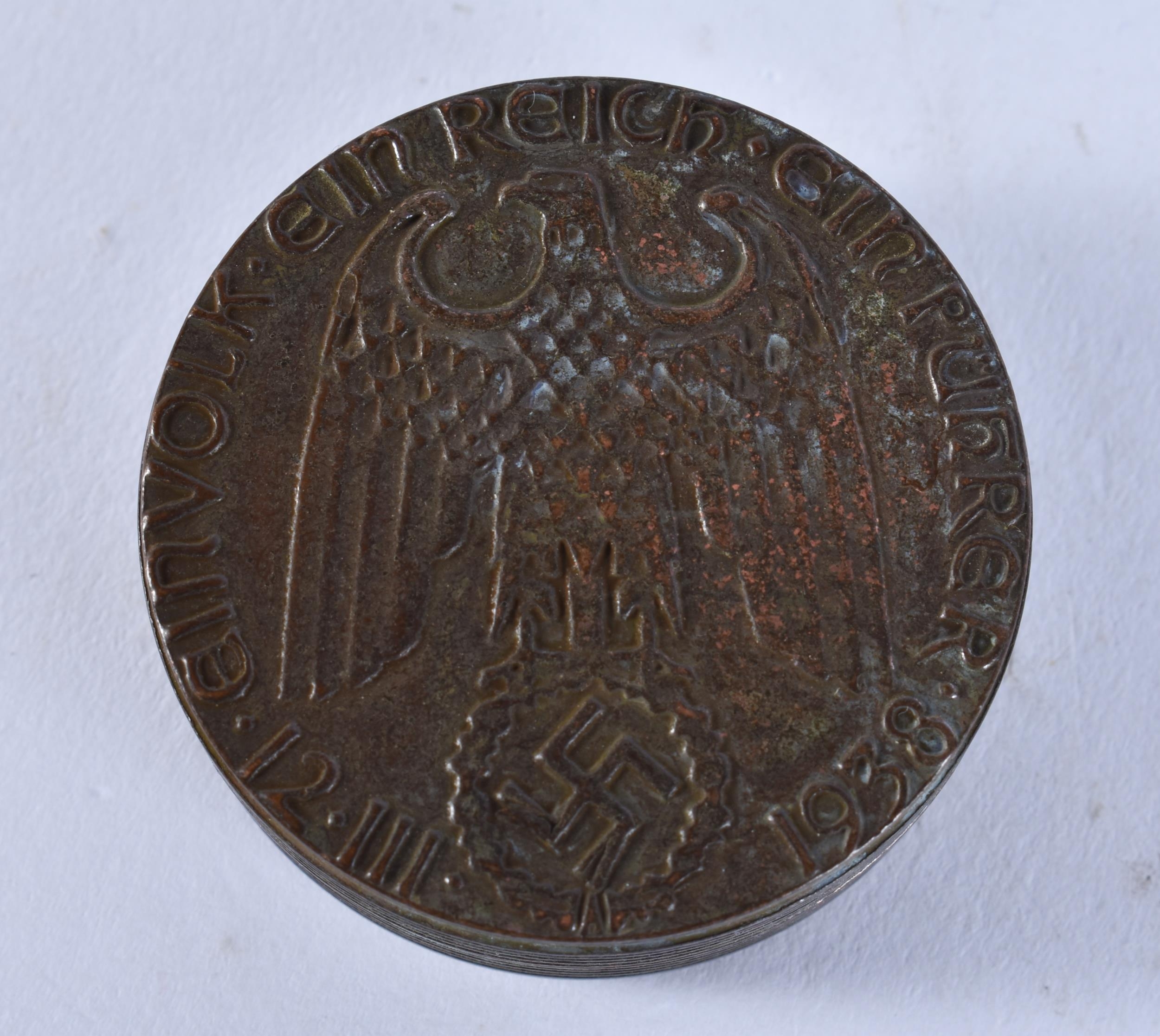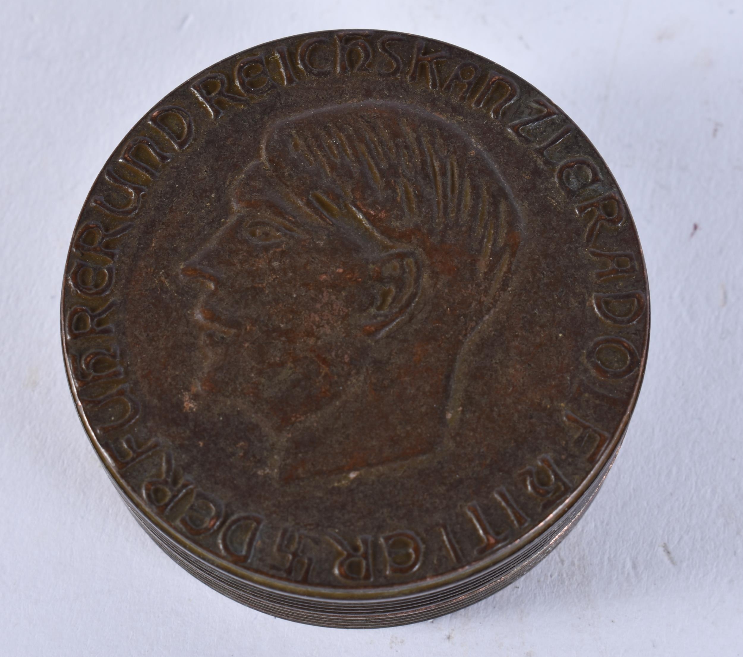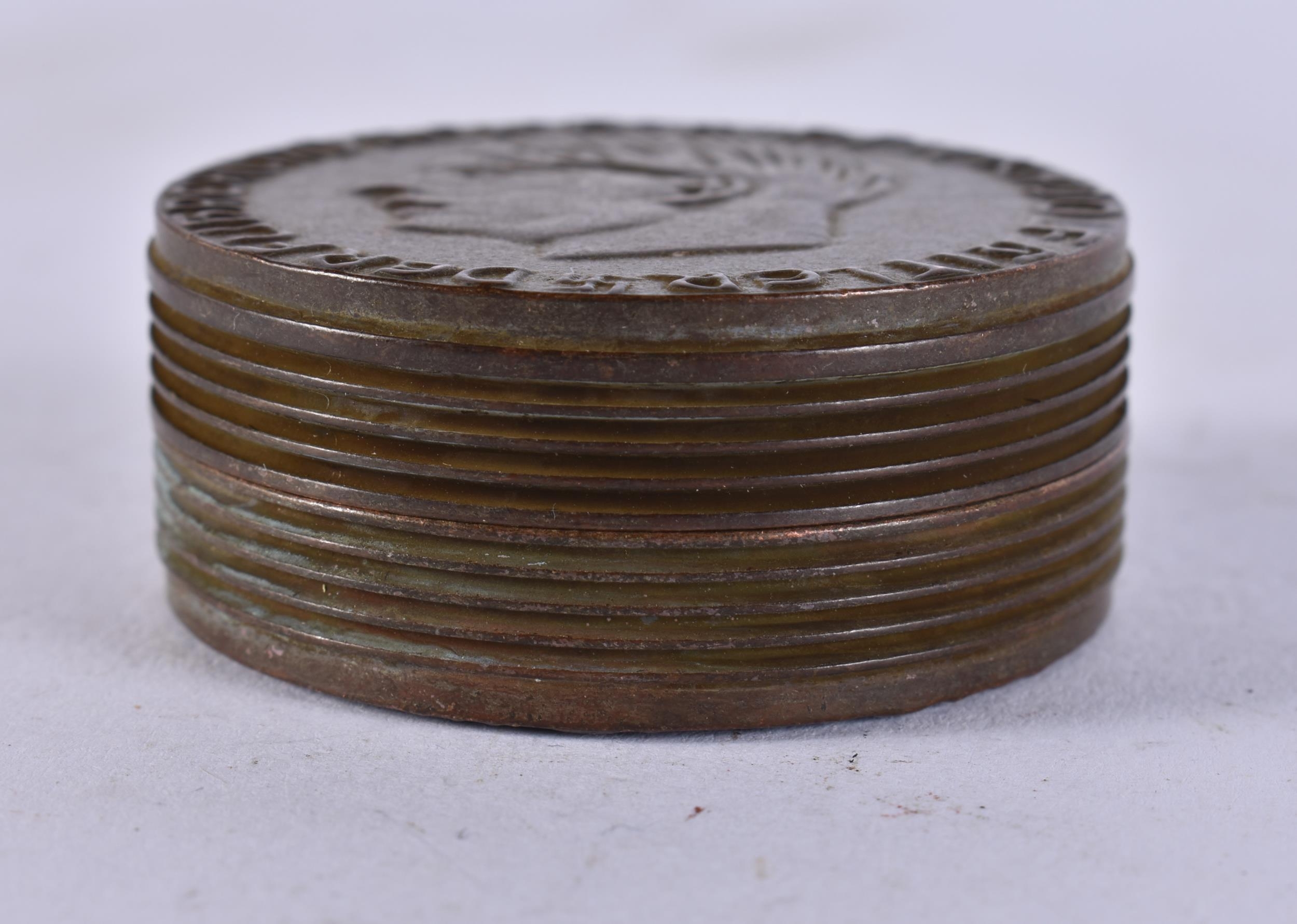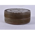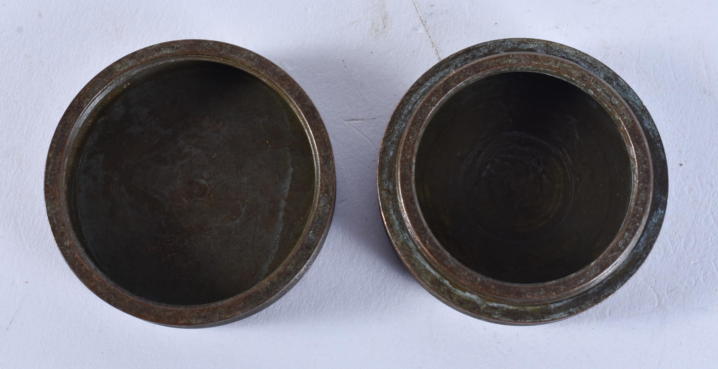 A BRONZE MILITARY BOX AND COVER. 77 grams. 5 cm wide.
