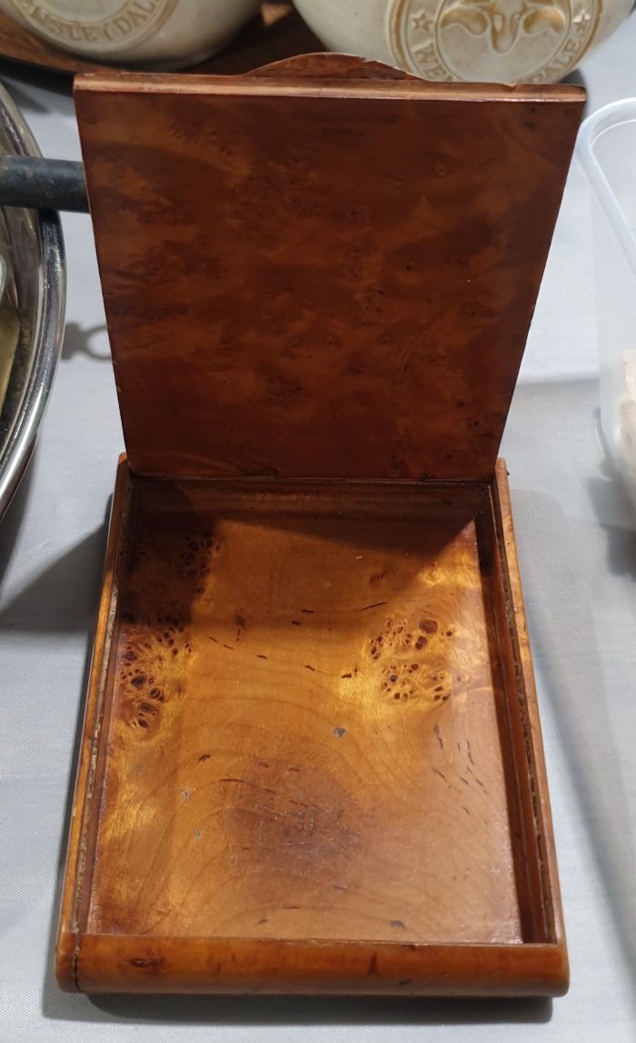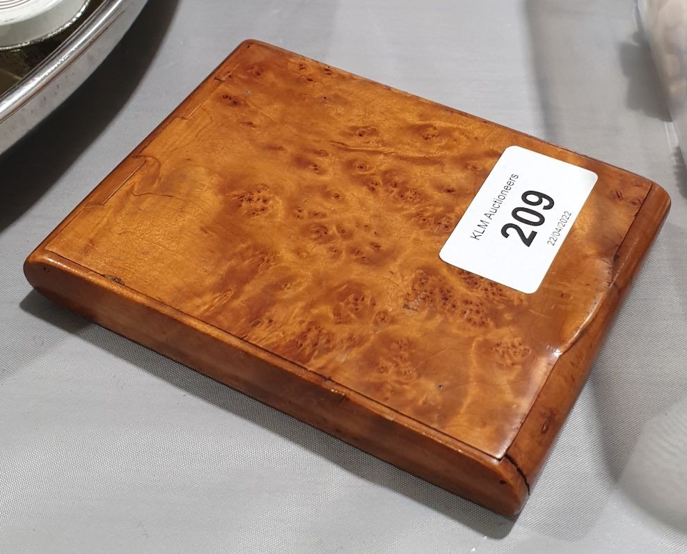 A vintage burr walnut card case, length 4.5".UK shipping £14.