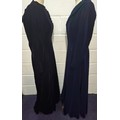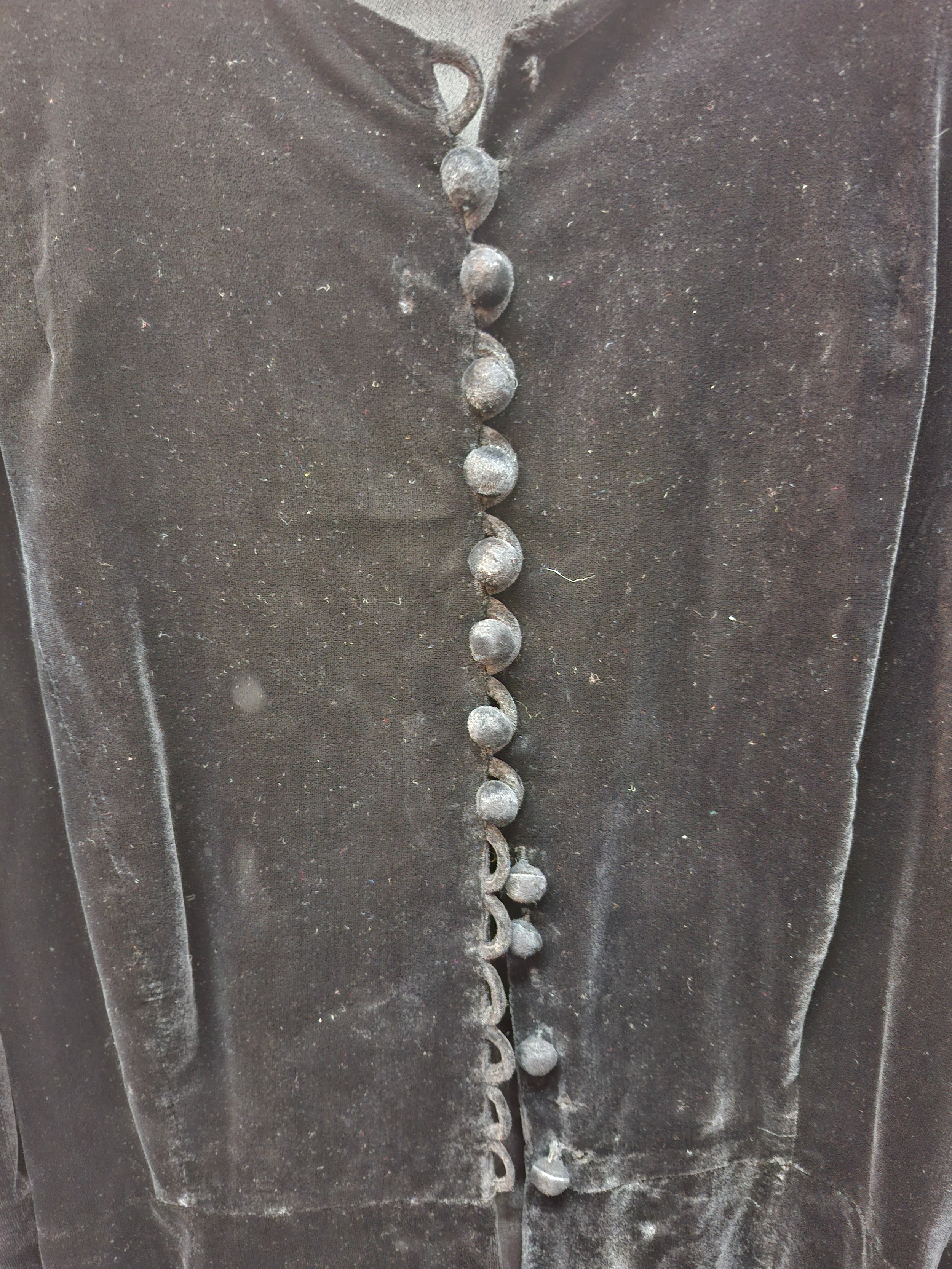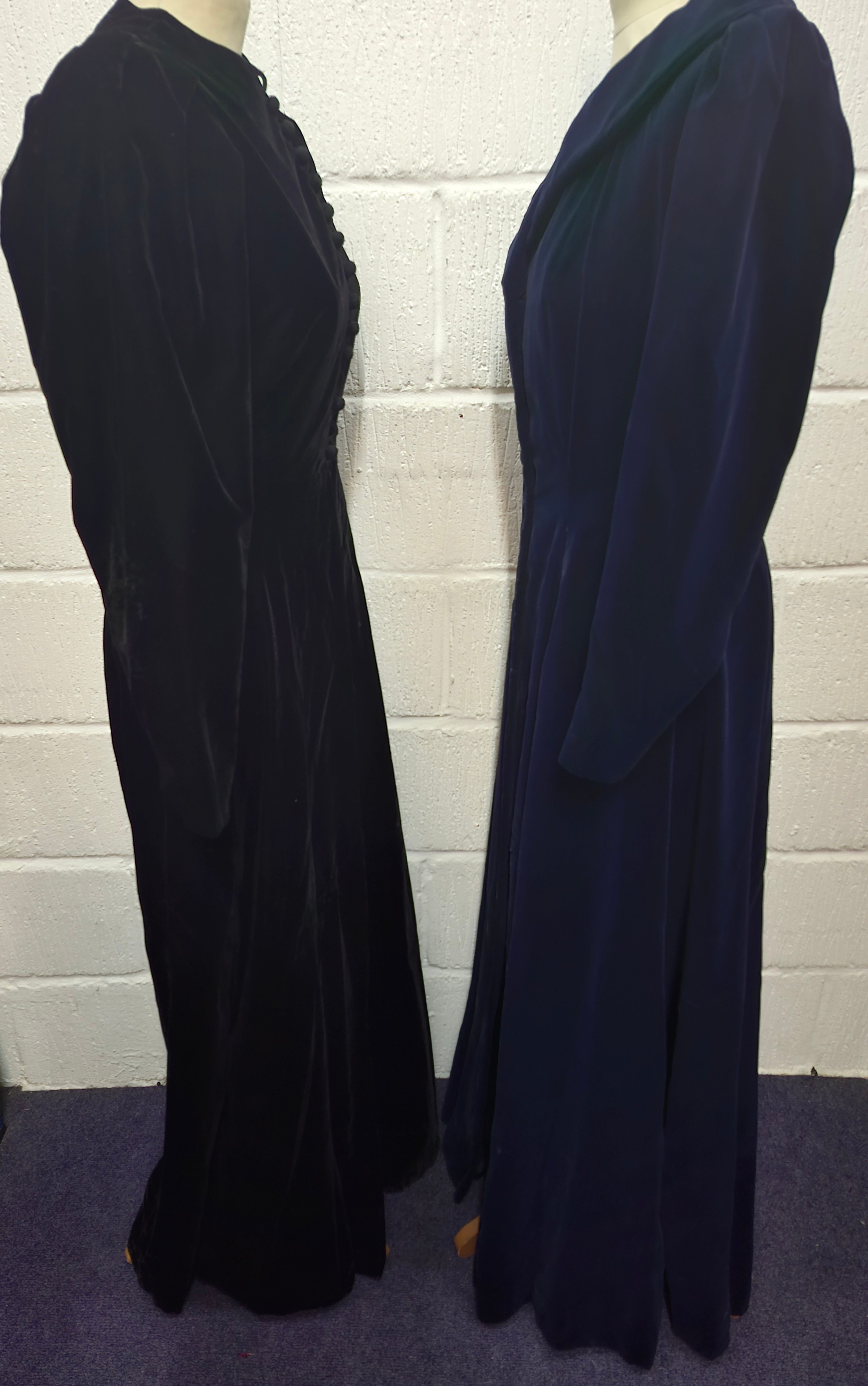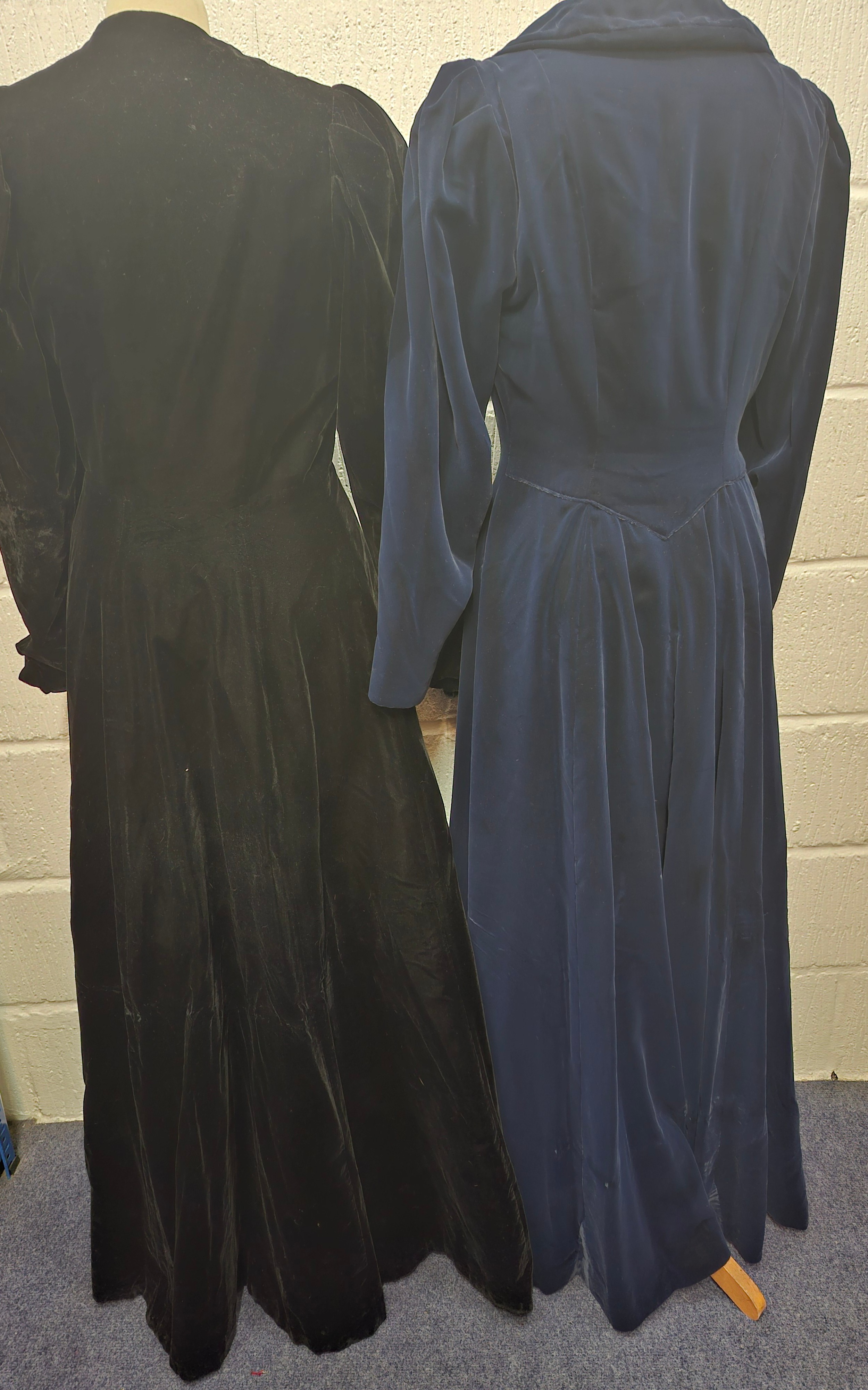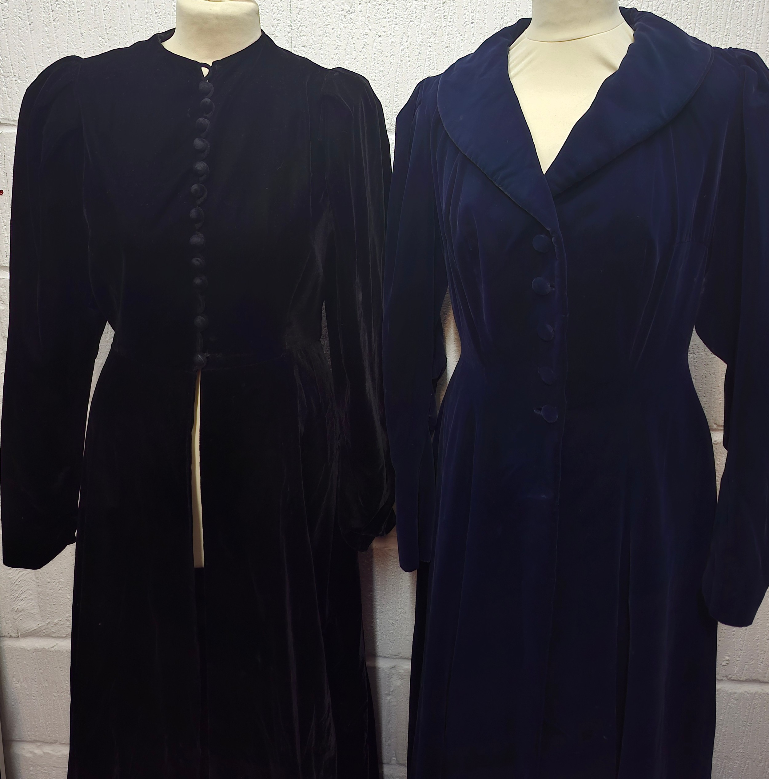 A mid 20th Century black astrakhan swing coat with tapered waistline approx 36" chest, an Edwardian navy velvet evening coat approx 34" chest and a black velvet example (3 buttons missing)