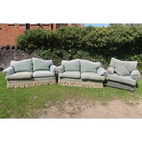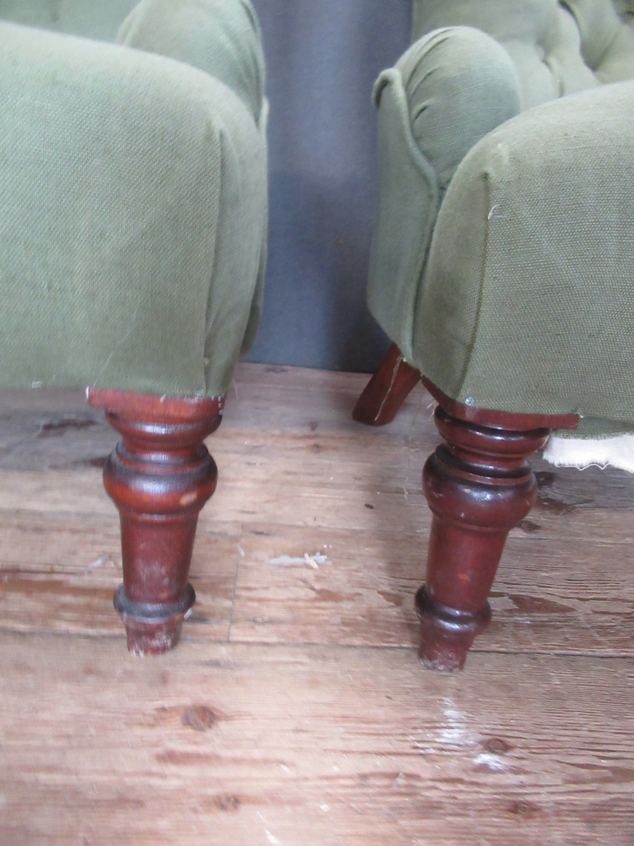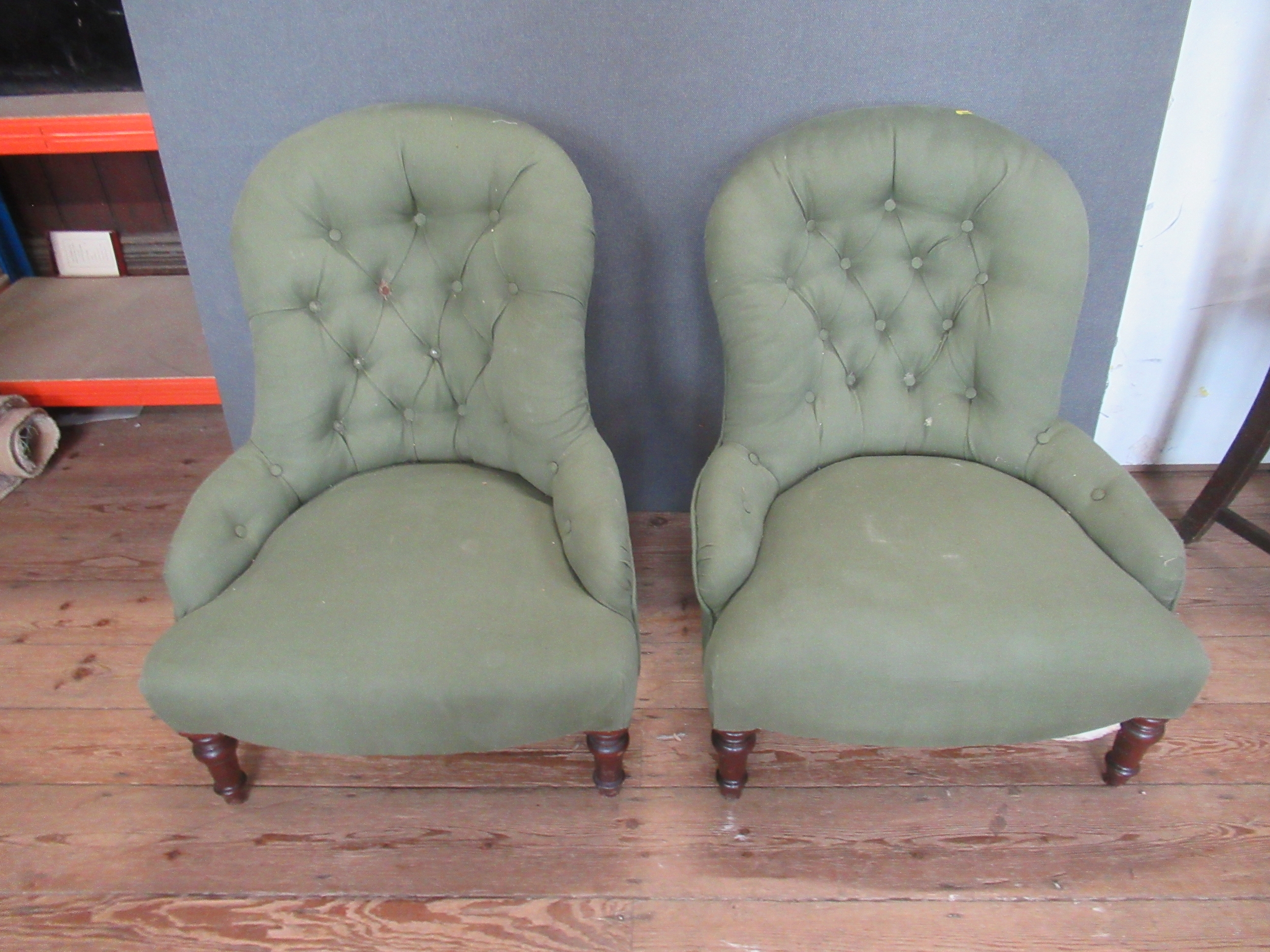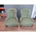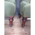 A pair of green button back nursing chairs