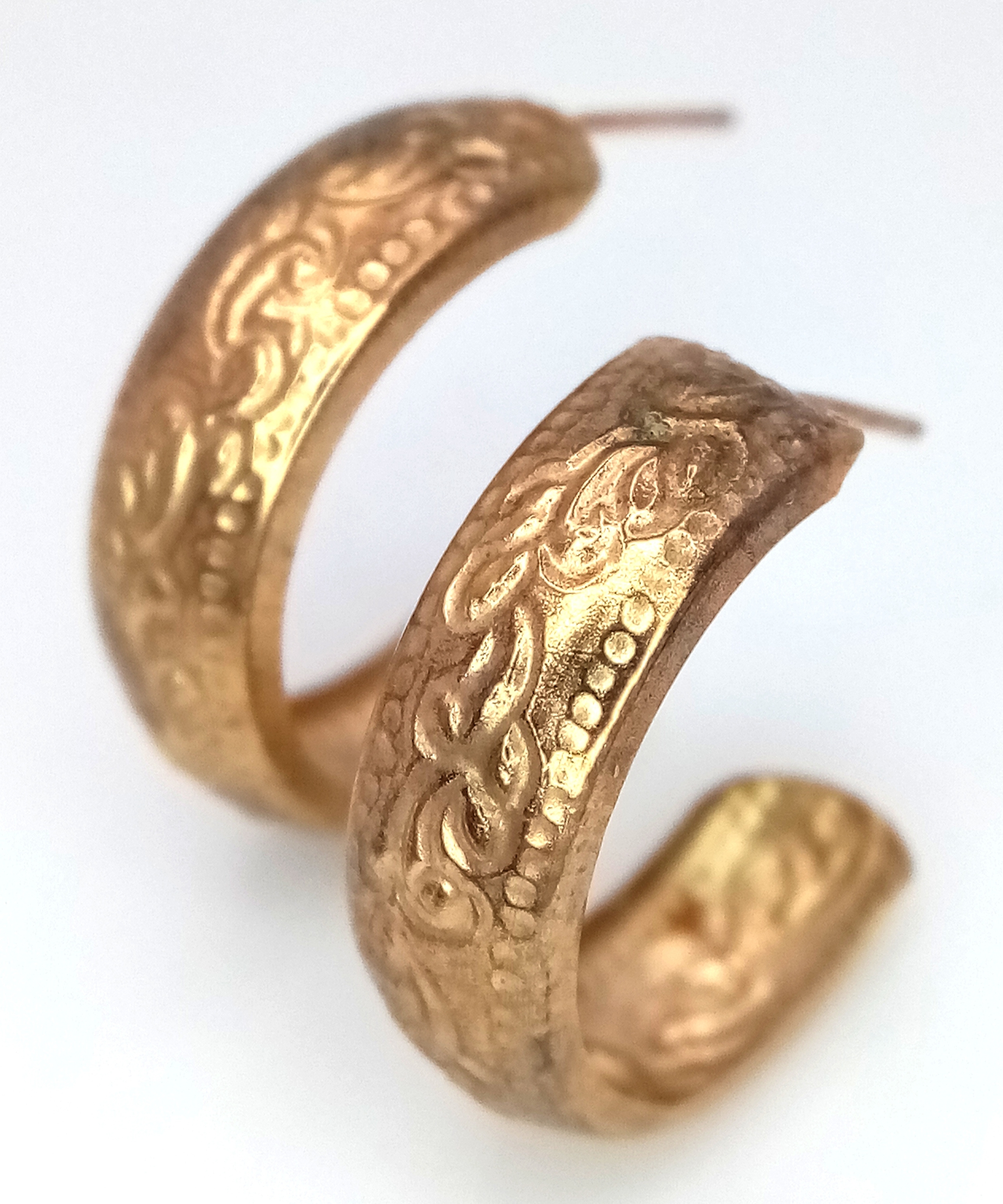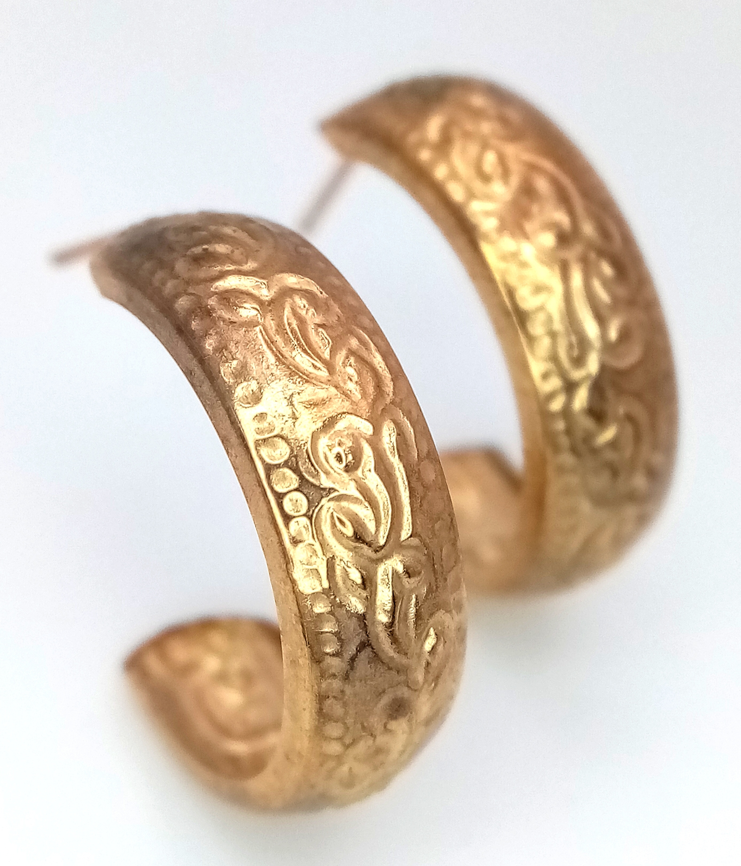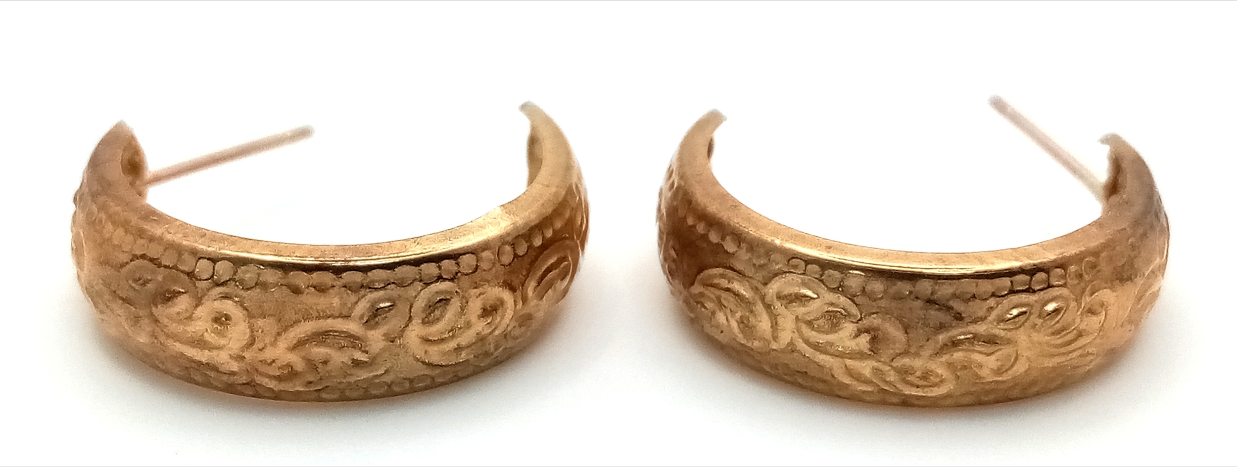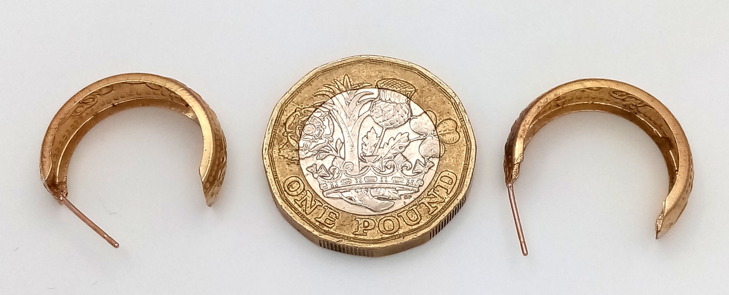 A Pair of 9K Gold Three Quarter Hoop Earrings. No backs. 0.72g.