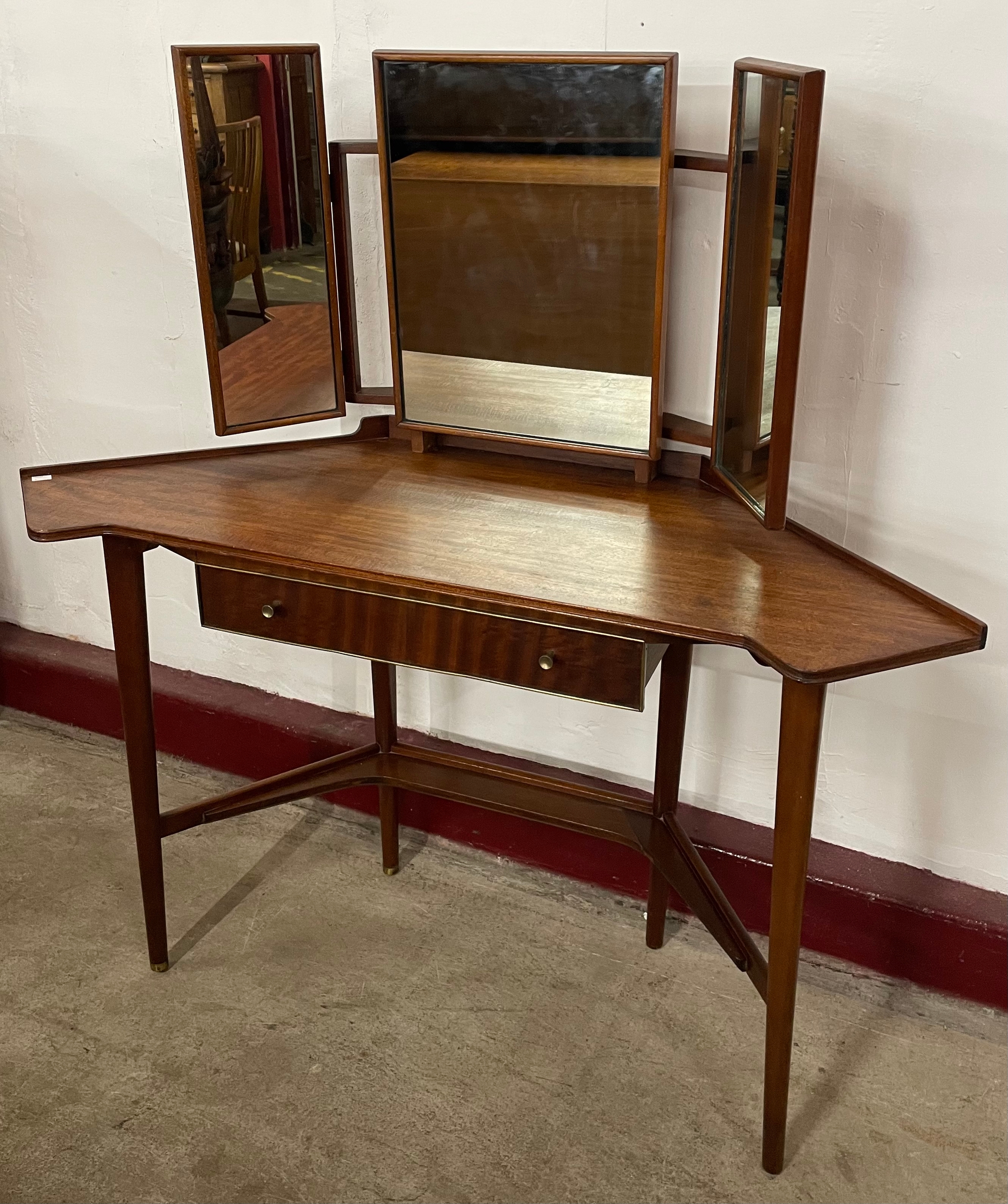 A Greaves & Thomas afromosia corner dressing table