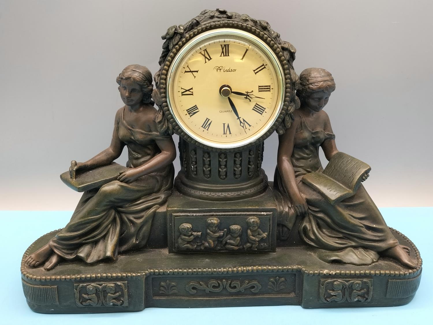 Crosa Resin Windsor Mantel Clock 1998. 22cm High, 33cm x 9cm.