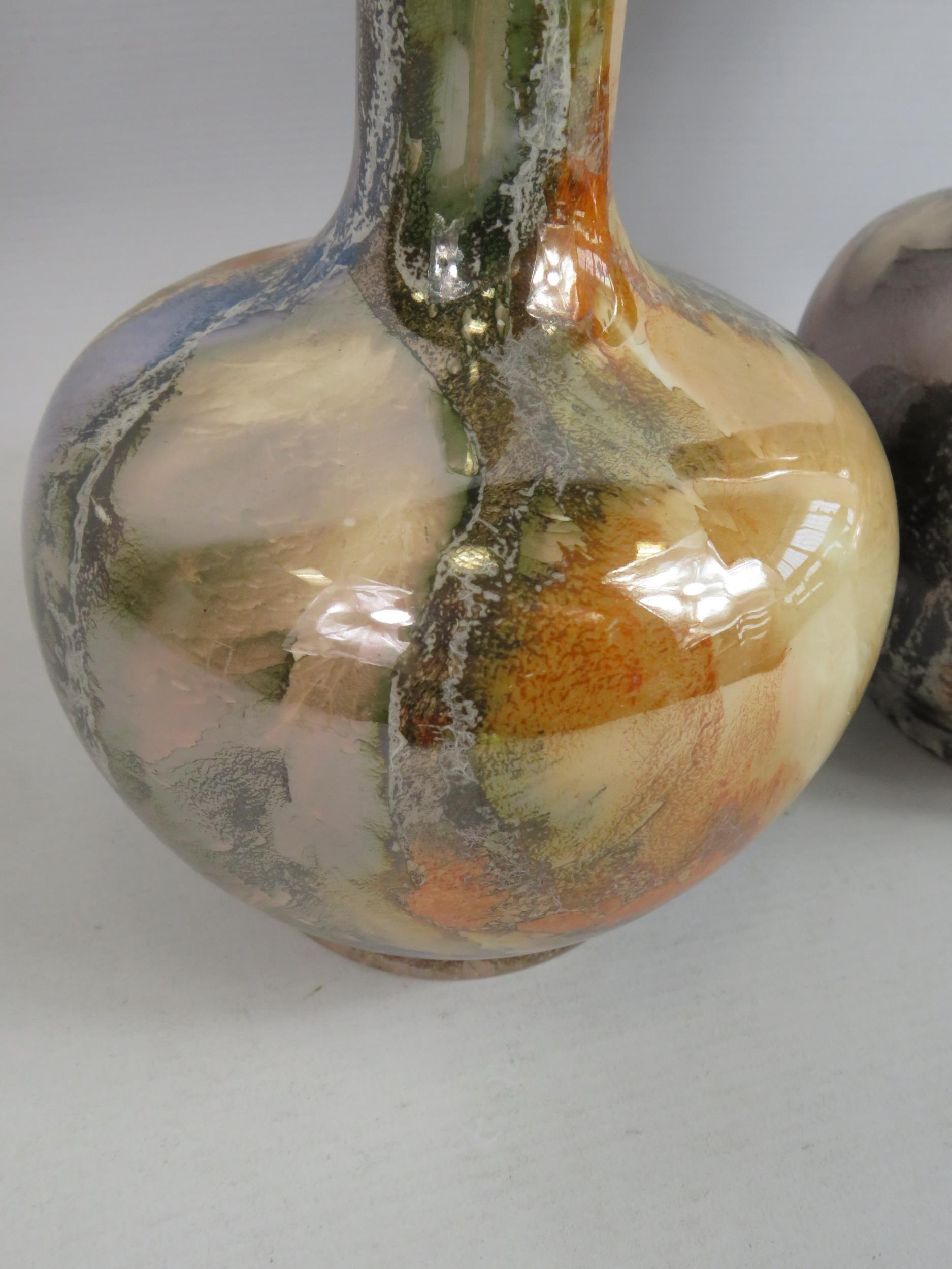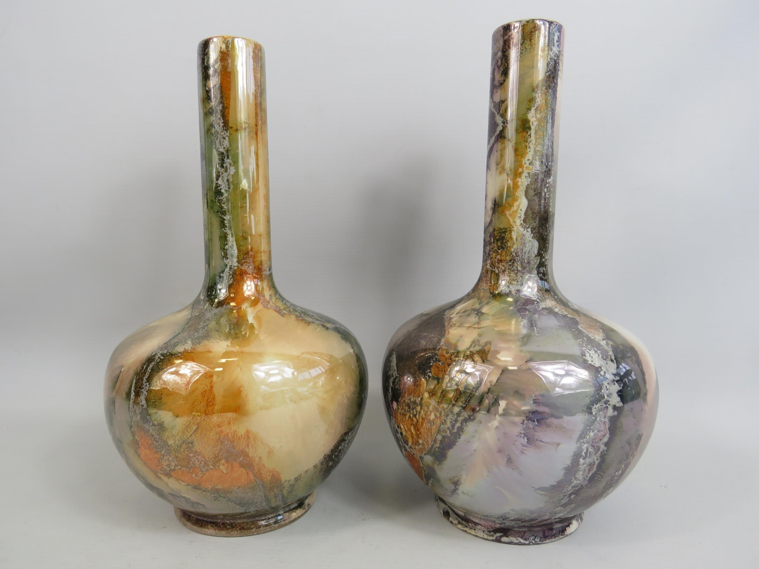2 Arabia ware lustre vases made in Finland 1930s 27cm tall.