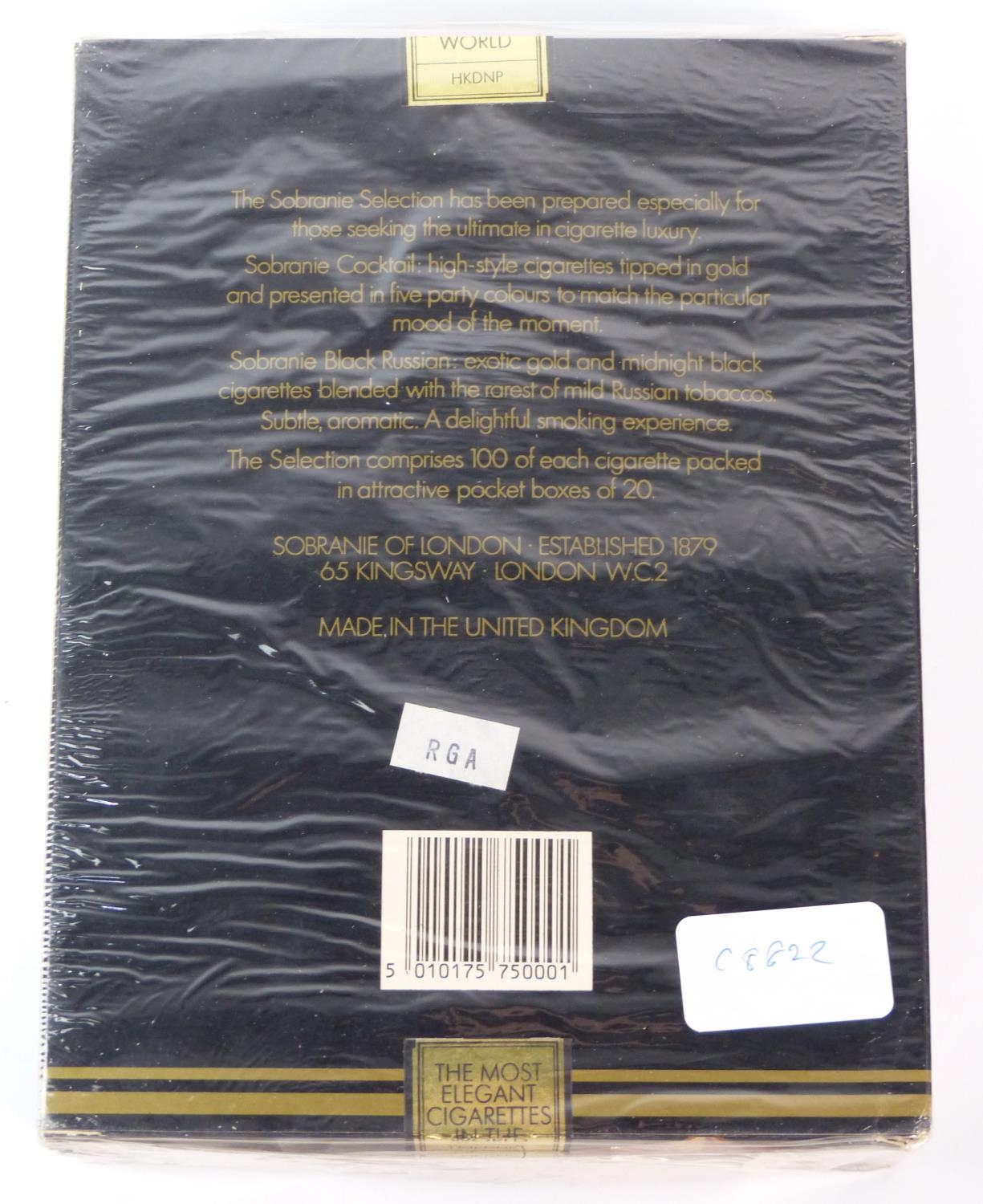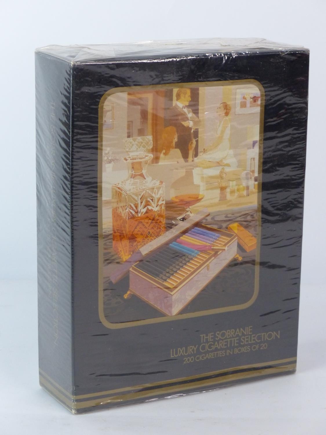 An unopened box of Sobranie luxury cigarettes (200 cigarettes in boxes of 20).