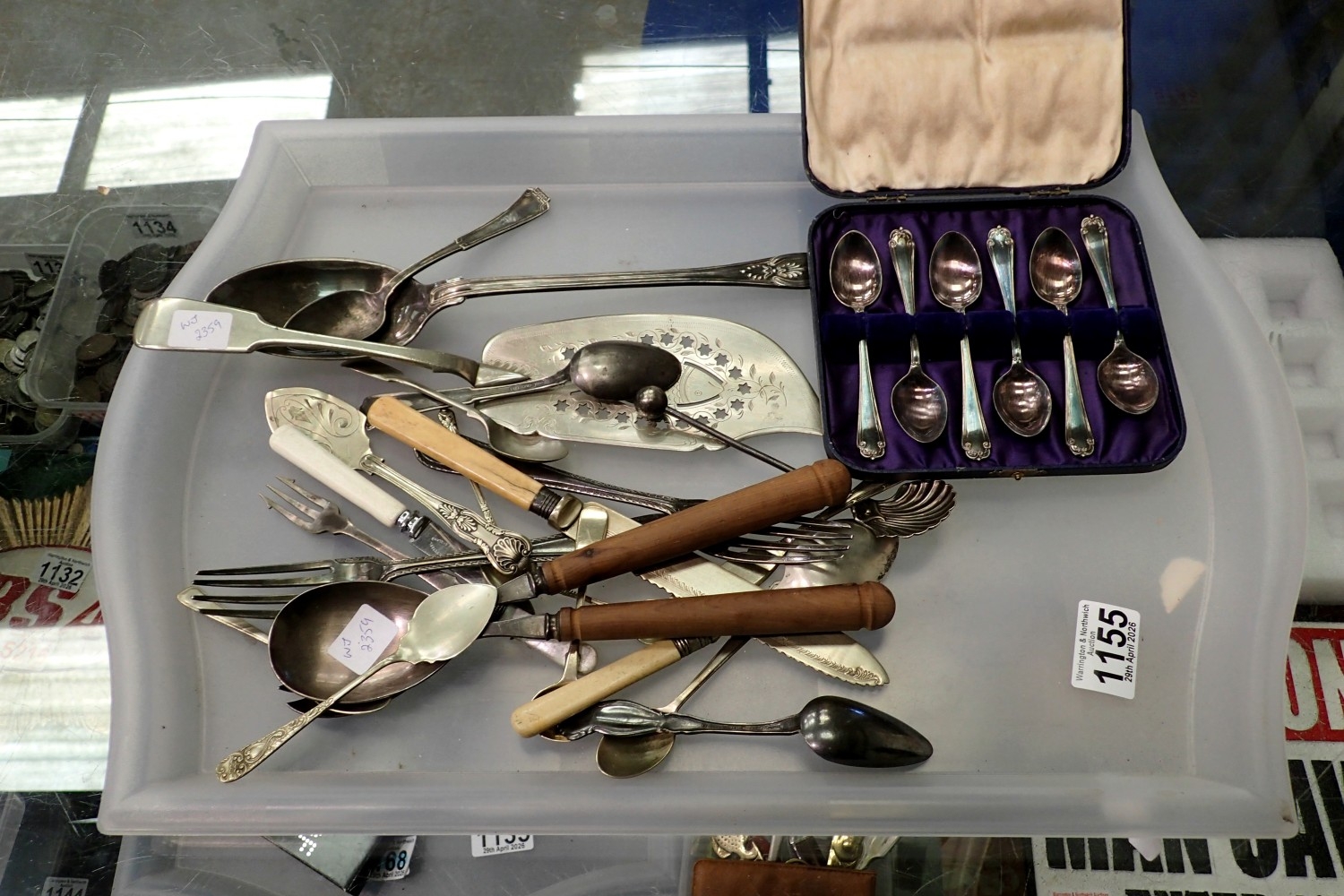 Silverplated basting spoon in the kings pattern a boxed set of silver plated coffee spoons and other flatware. Not available for in-house P&P
