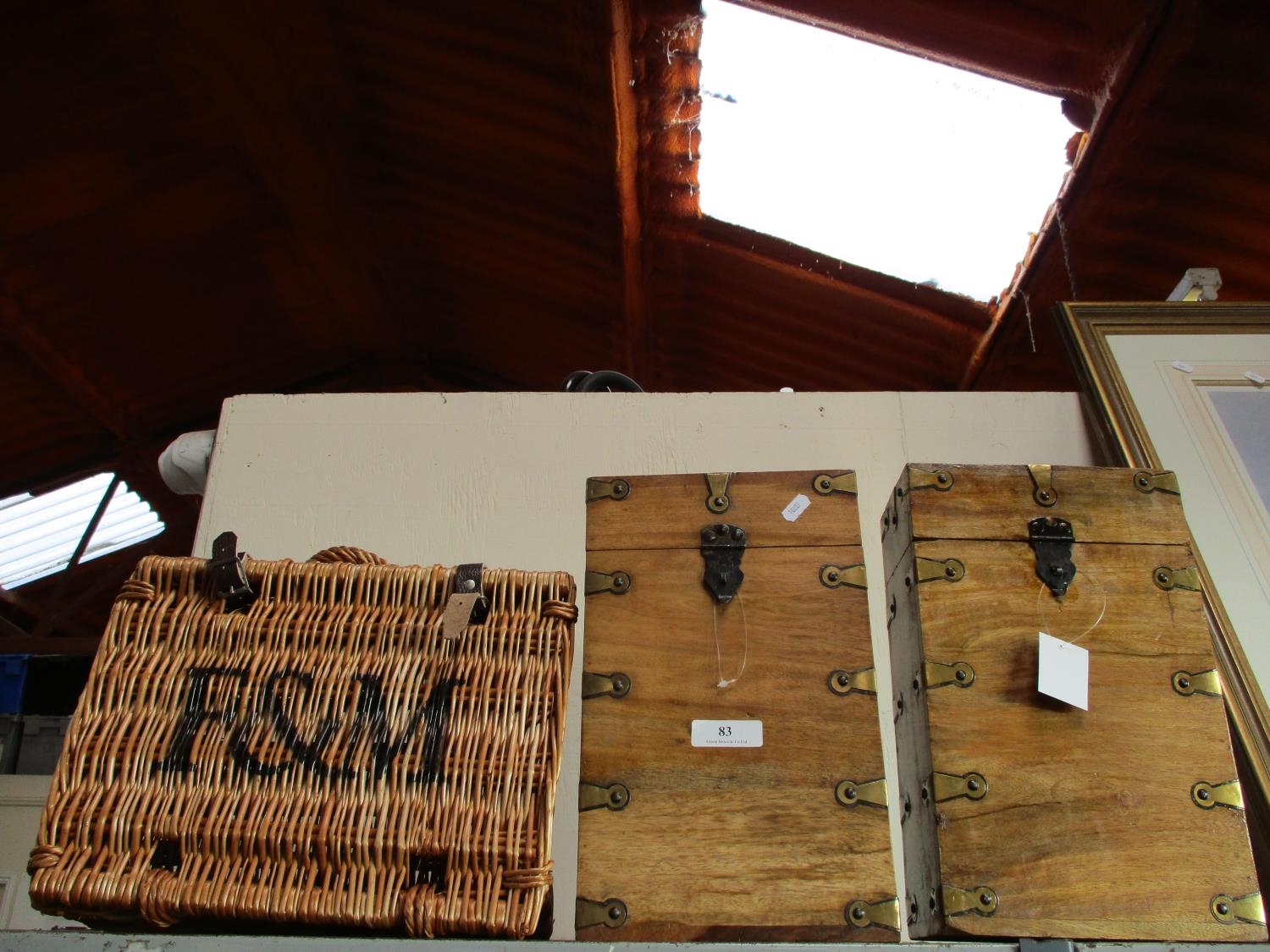 Two wooden wine bottle holders together with a Fortnum & Mason mini wicker hamper - all new