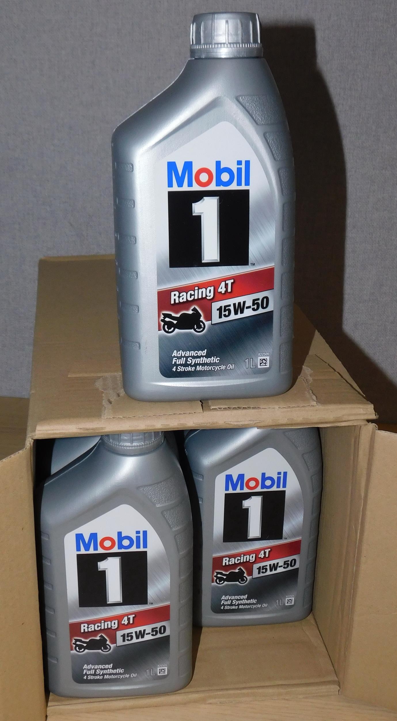 Full box of 12 Mobil 4 stroke motorcycle oil 15W-50