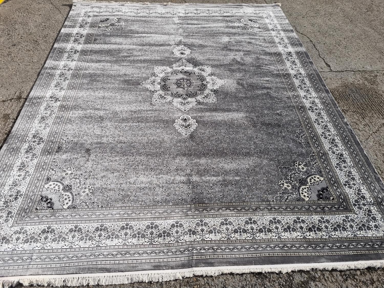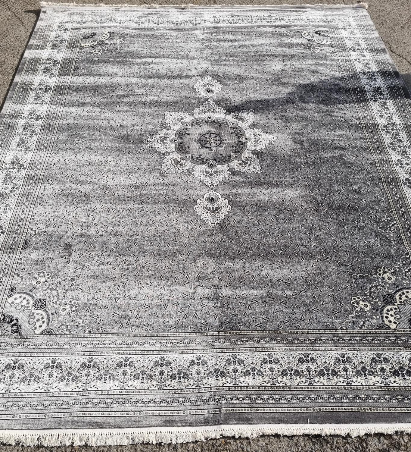 A large full pile Turkish Carpet with an all over Gray ground and a central medallion design. 500 x 400 cm approx.
