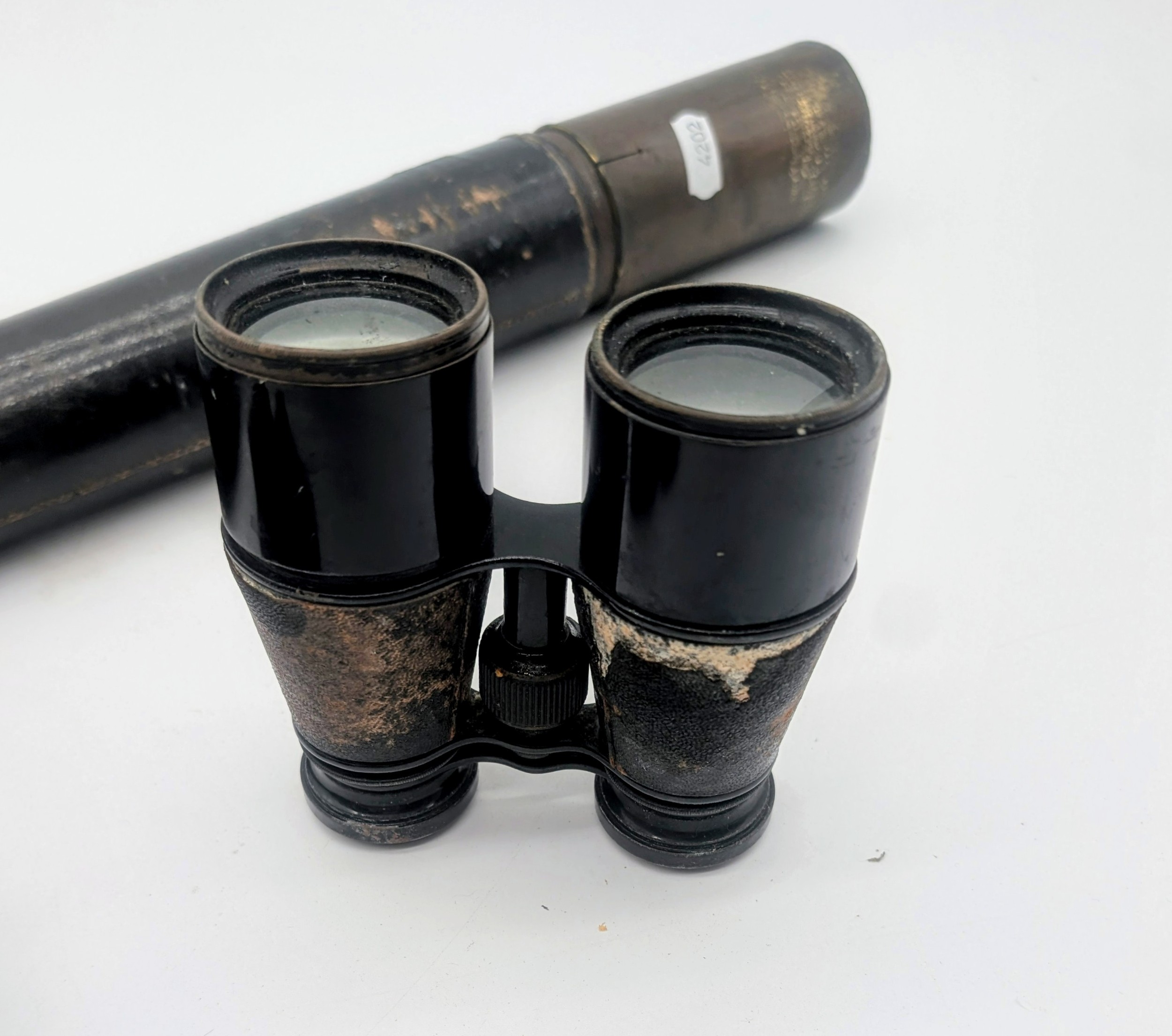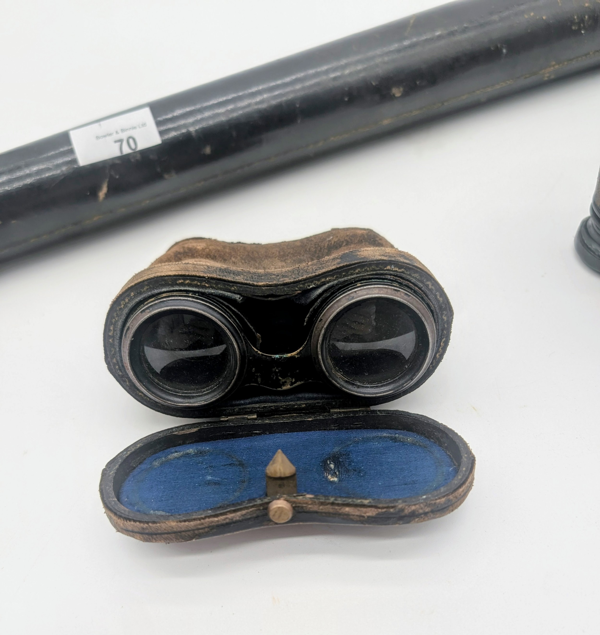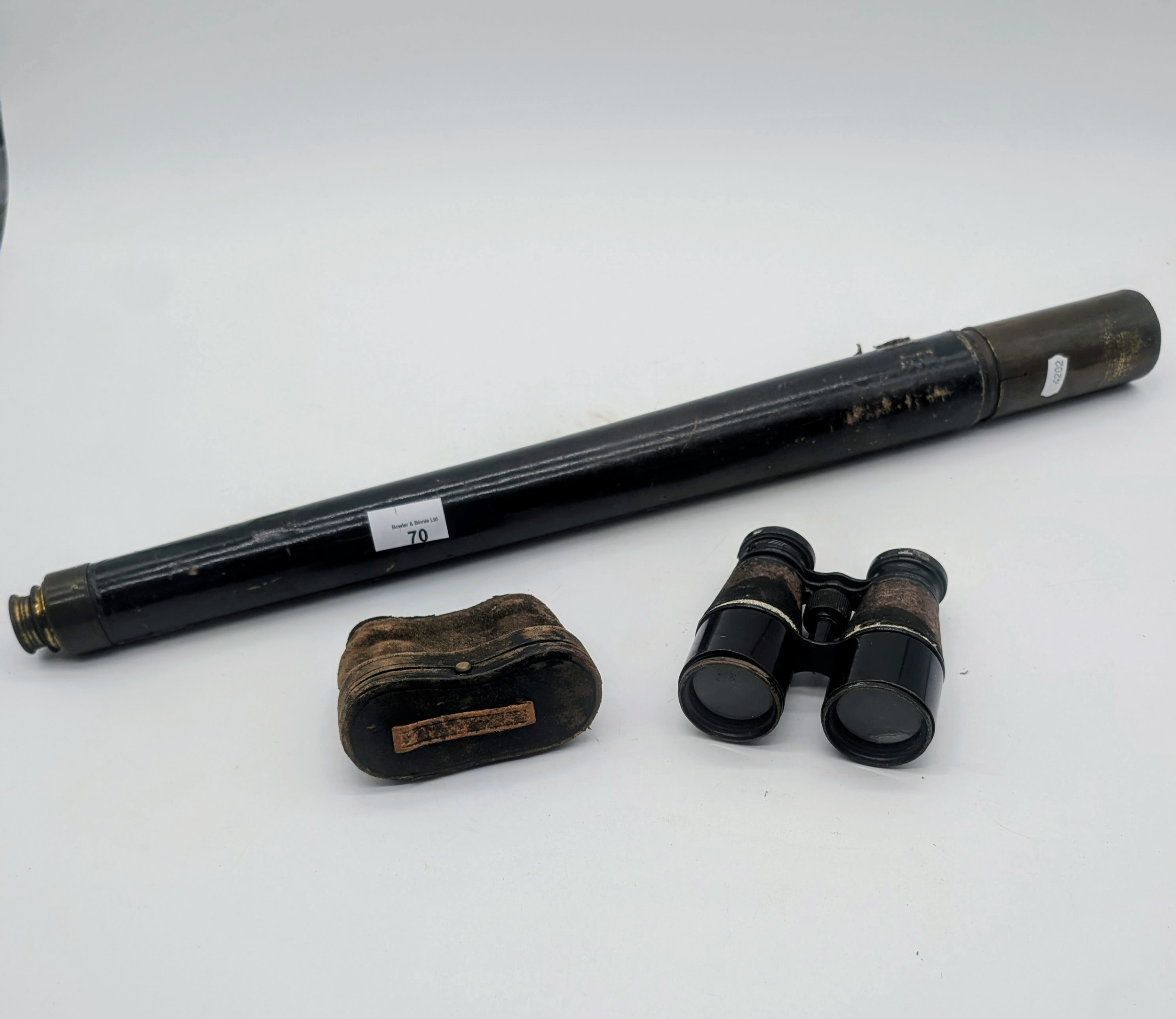 Antique Single draw telescope together with two pairs of cas...