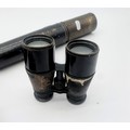 Antique Single draw telescope together with two pairs of cased binoculars