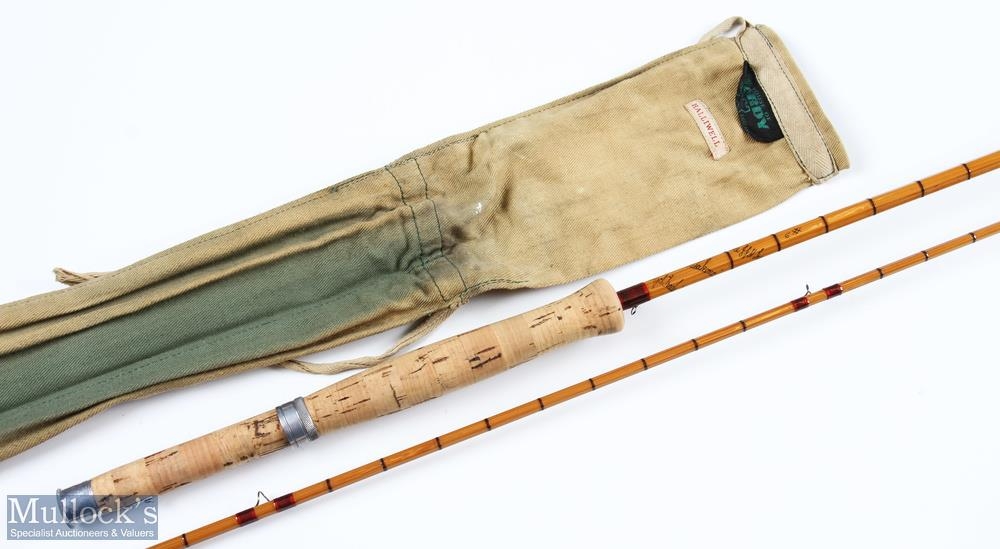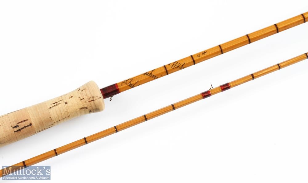 A fine Hardy Alnwick "J J H Triumph" Palakona Split Cane Fly Rod H63076 (1965) 8ft 6" 2pc line 6#, alloy sliding reel fitting, agate lined butt/tip rings with ferrule acorn, in Hardy cloth bag and alloy tube, no top