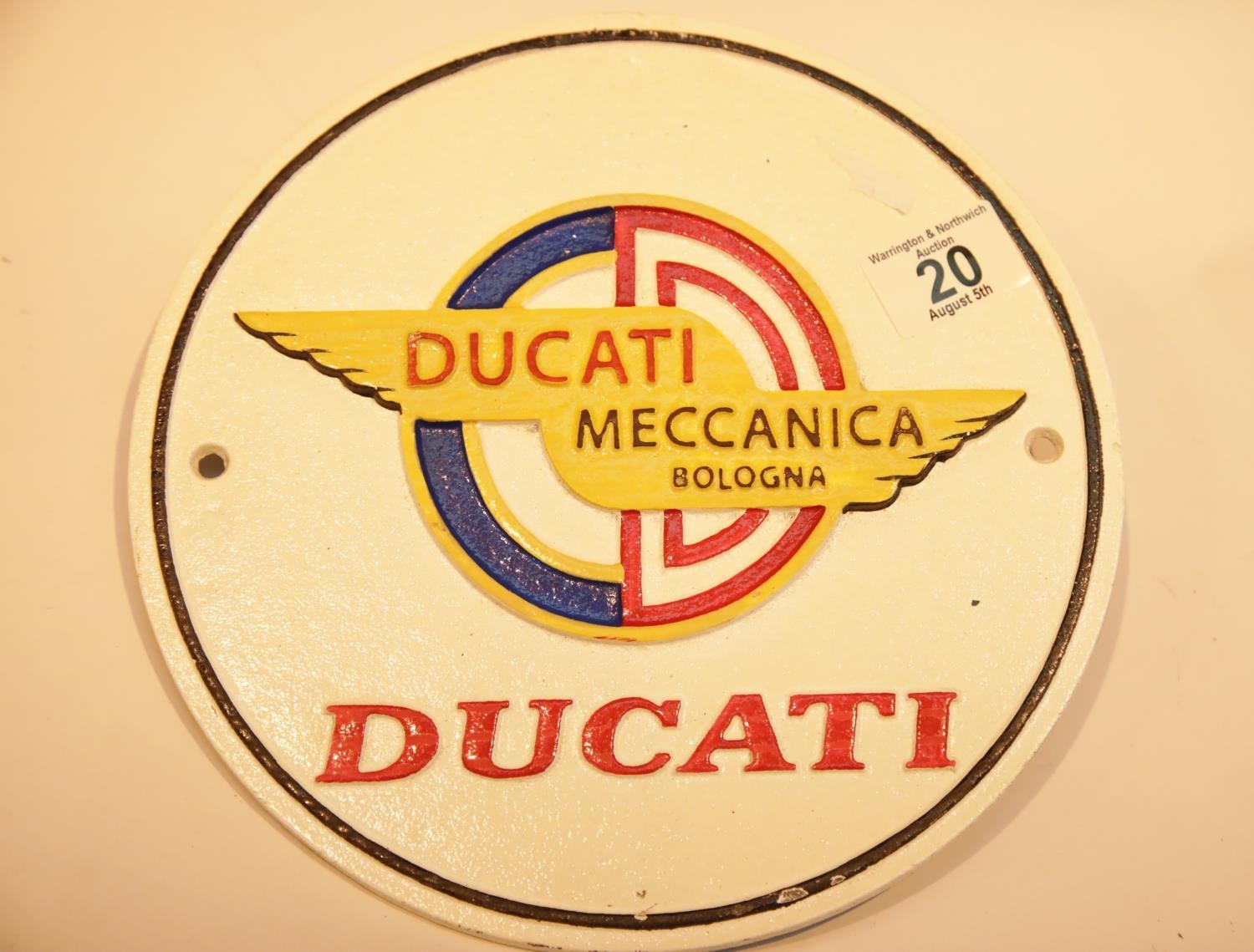 Cast iron Ducati Meccanica sign, D: 24 cm. P&P Group 2 (£18+VAT for the first lot and £2+VAT for subsequent lots)