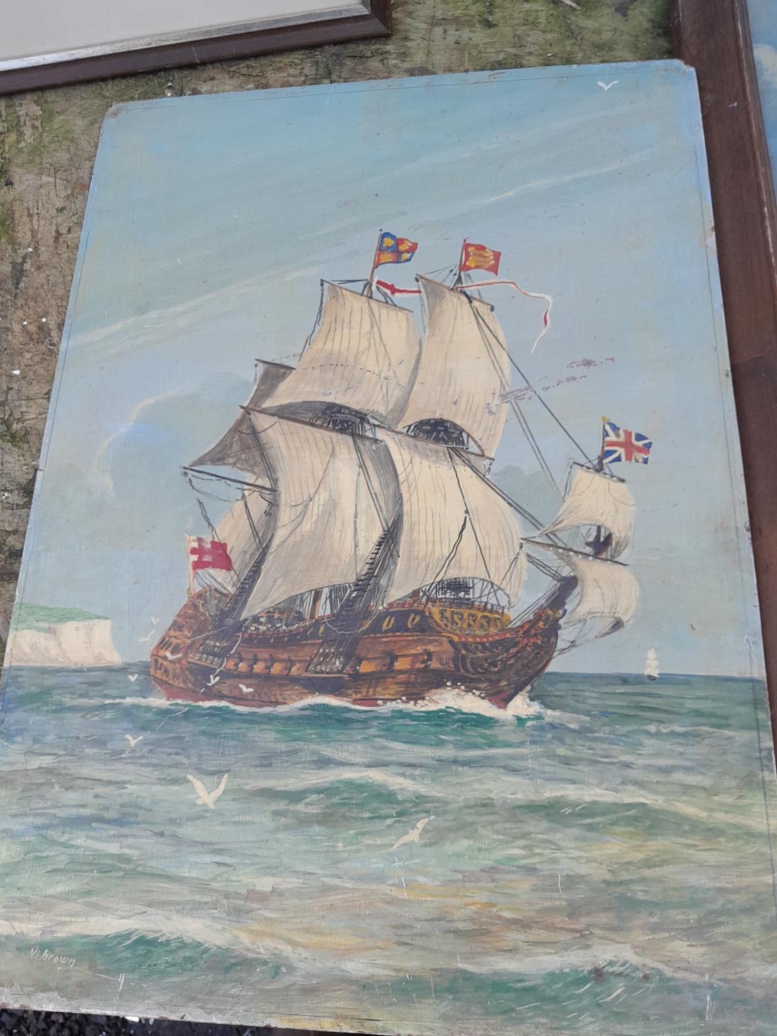 Pictures : 2 x oil on board marine scenes by N Brown, endorsed print, & pastel by Jean Owen
