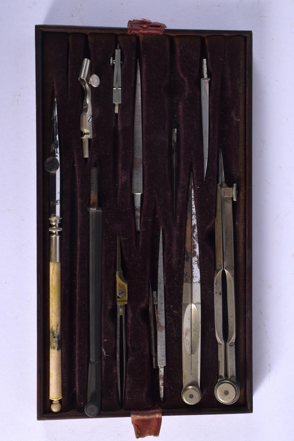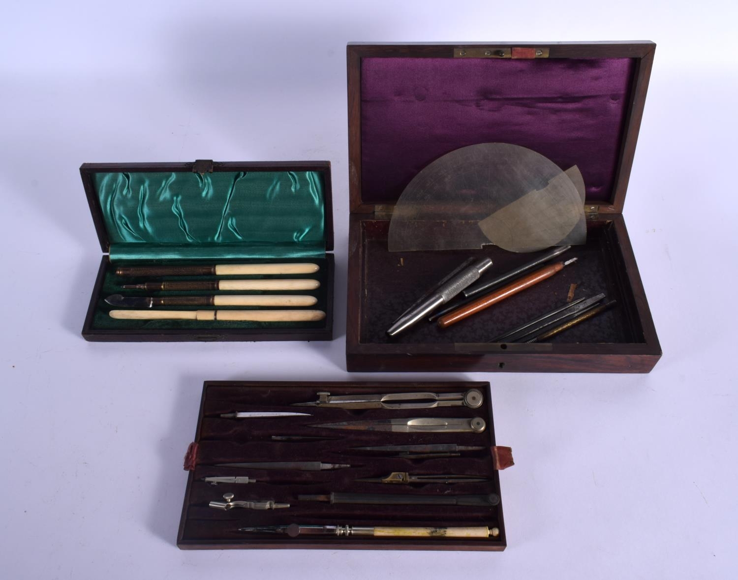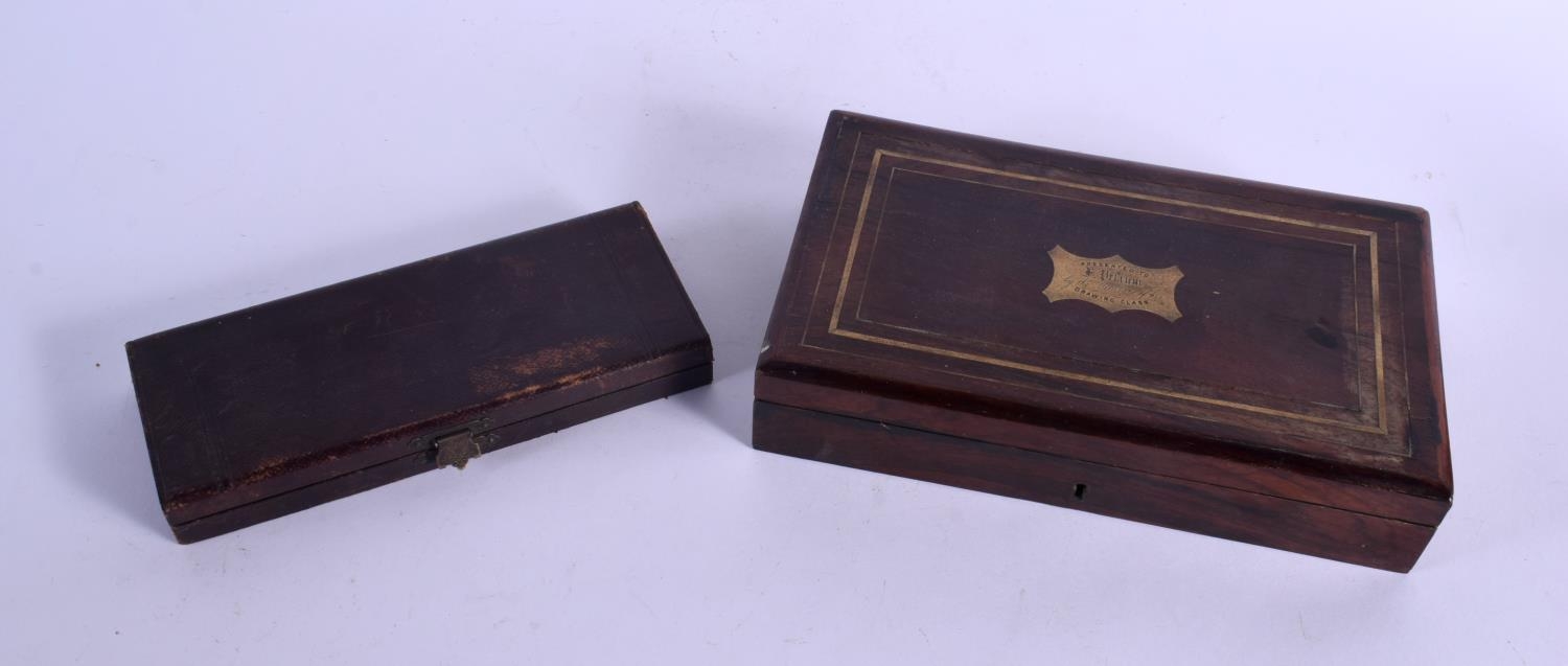 TWO CASED ANTIQUE SCIENTIFIC INSTRUMENT SETS. Largest 22 cm x 14 cm. (2)