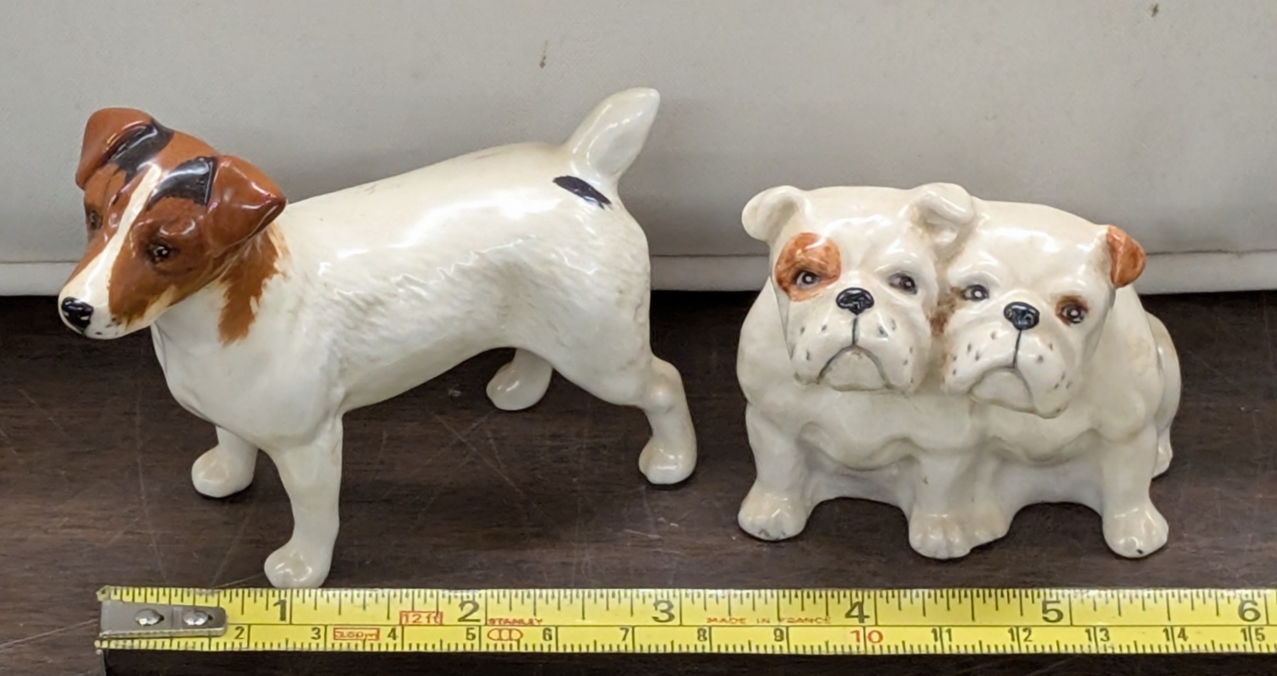 Two Beswick Ceramic Dog Figurines including a Jack Russell Terrier and English Bulldog Puppies