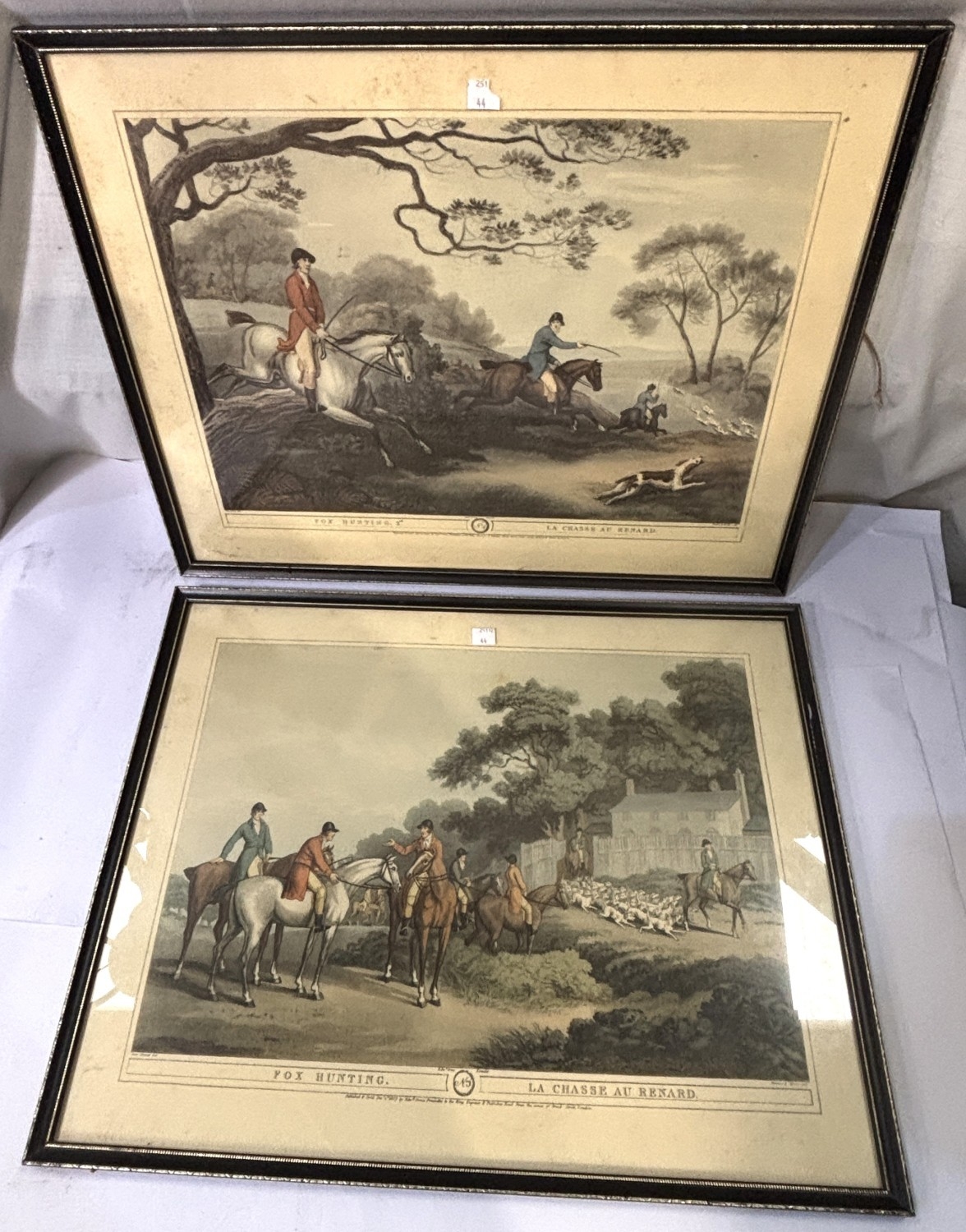 4 Hunting prints "Woodcock Shooting", "Pheasant Shooting", "Fox Hunting" etc.