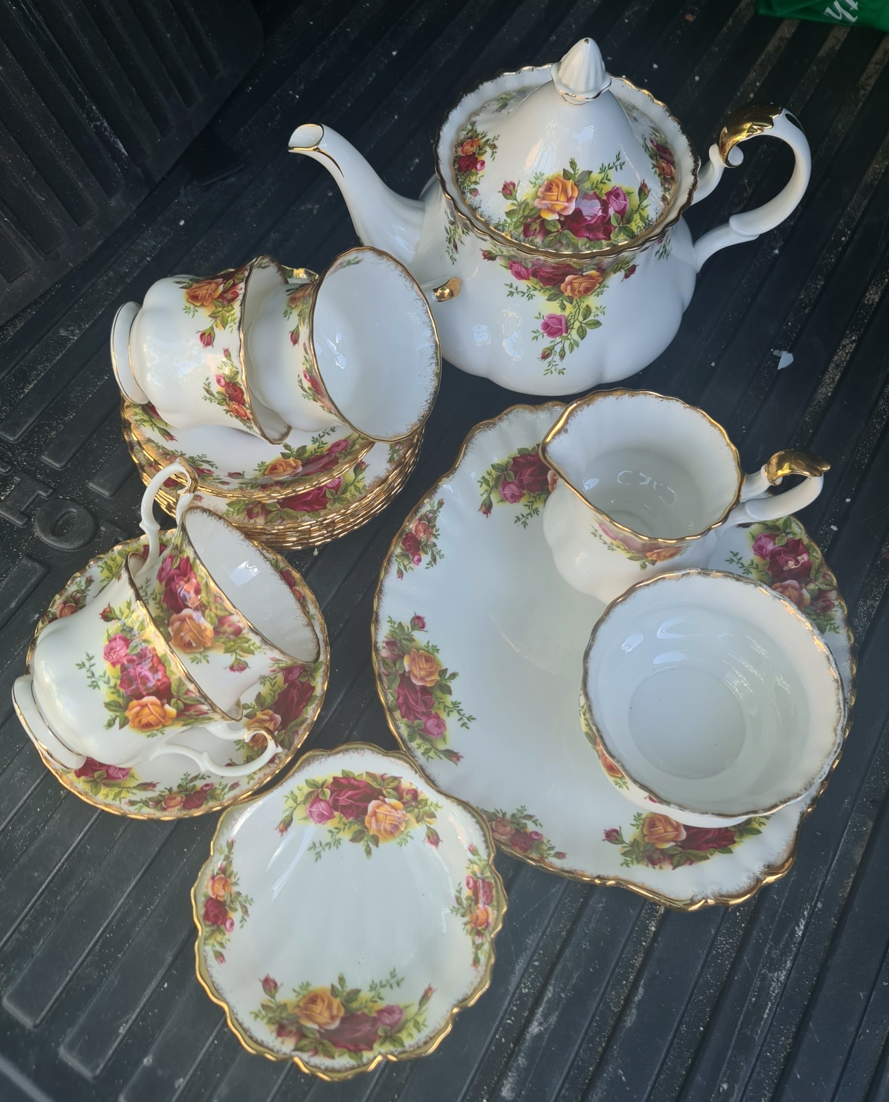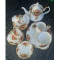 Vintage Royal Albert Country Rose Tea Service. Includes Tea Pot Six Cups and Saucers Milk Jug Sugar Bowl and Cake Plate. 22 Pieces in Total. The tea pot is 17cm tall by 26cm long. Shipping is available. Please ask for a quote before bidding. Where possible we combine shipping costs. Remember, if you are the highest bidder above reserve on this Lot you have bought the item and are legally responsible for the item. Viewing is recommended in either person or via video link. Contact us to arrange.