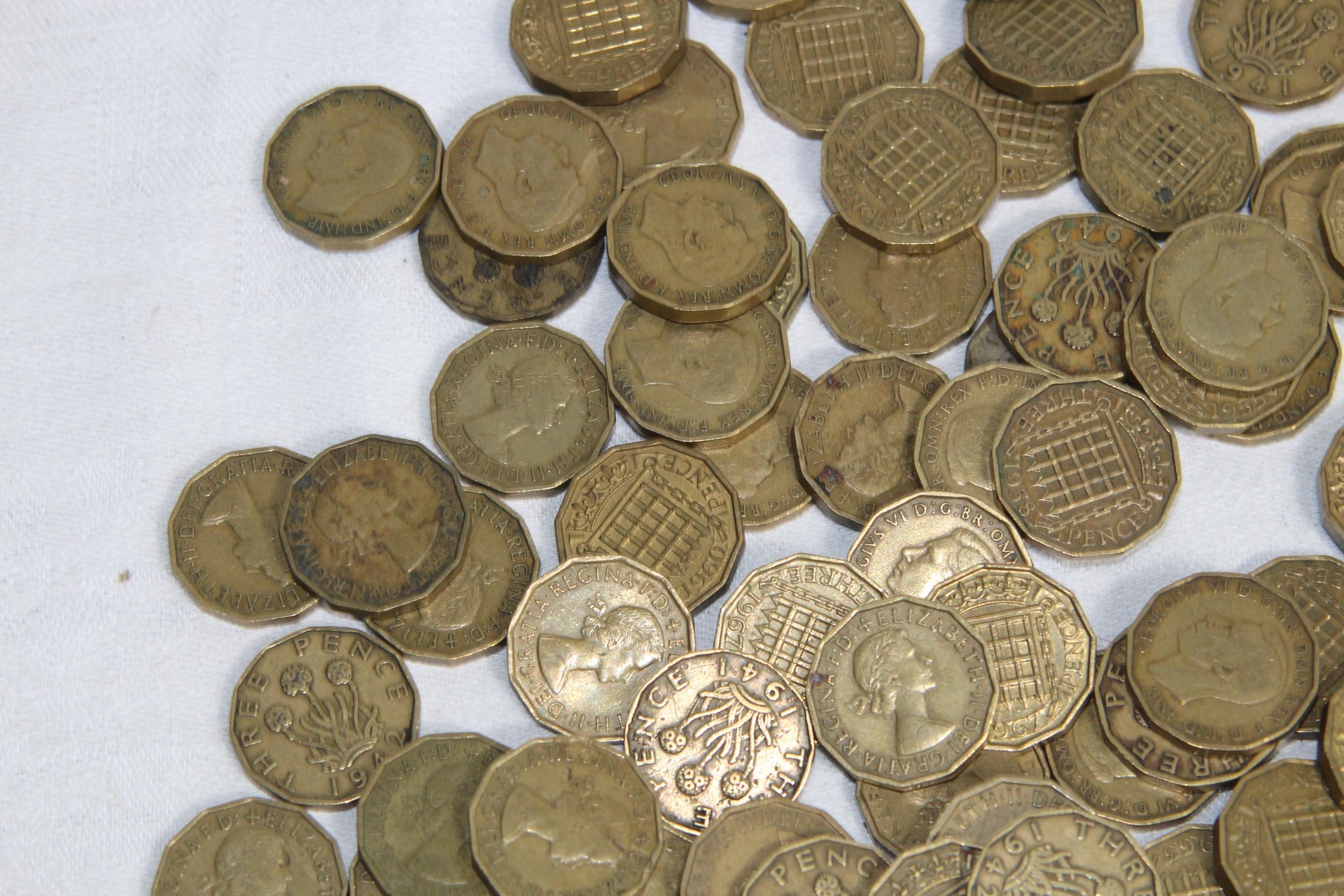 QUANTITY OF VINTAGE THREE PENNY PIECES