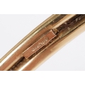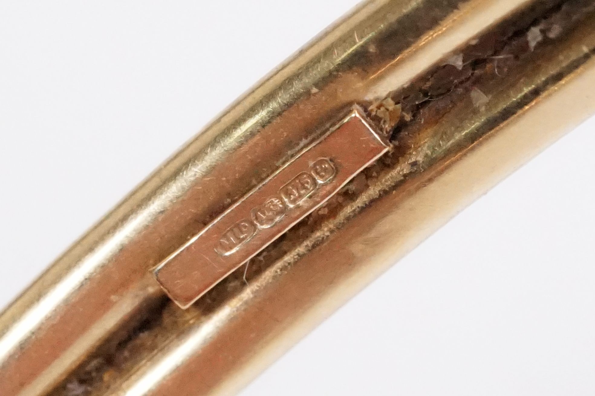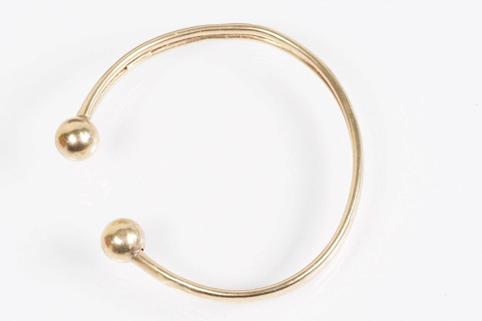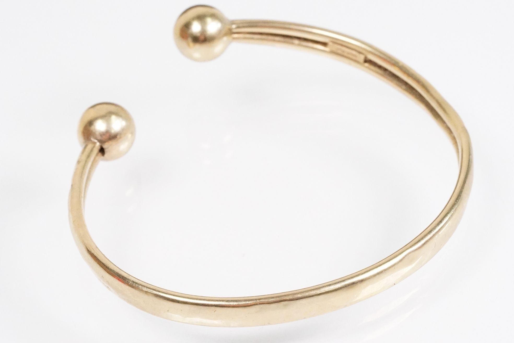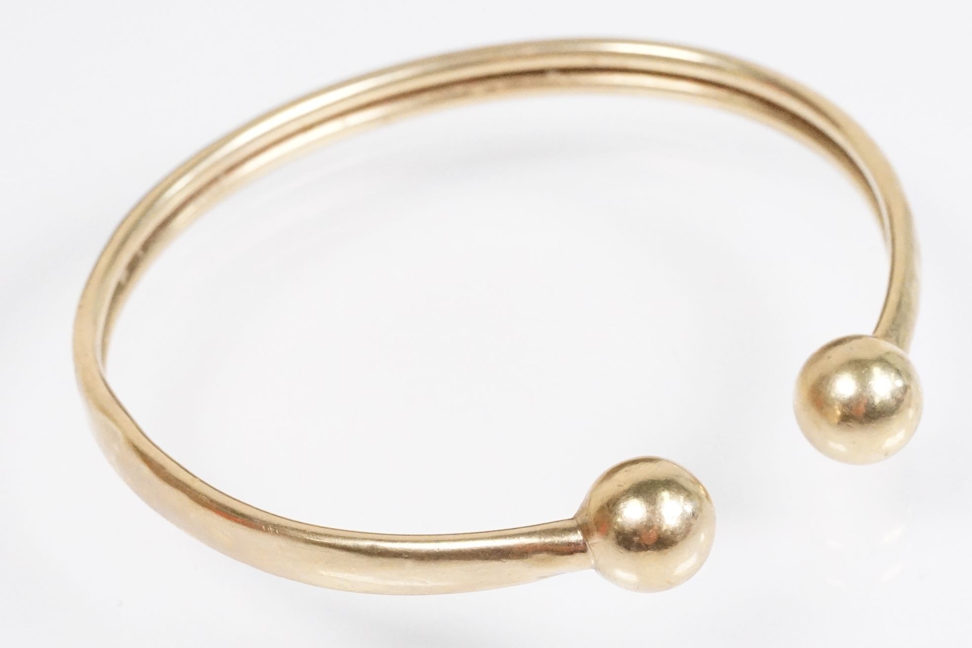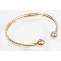 9ct gold bangle bracelet having ball terminals. Hallmarked Birmingham. Measures 2.5 inches.