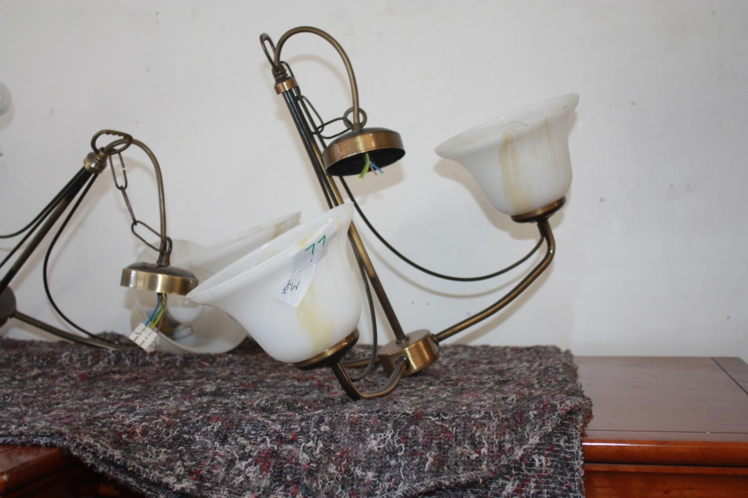 Two Five-Branch Chrome Light Fittings with Opaque Shades