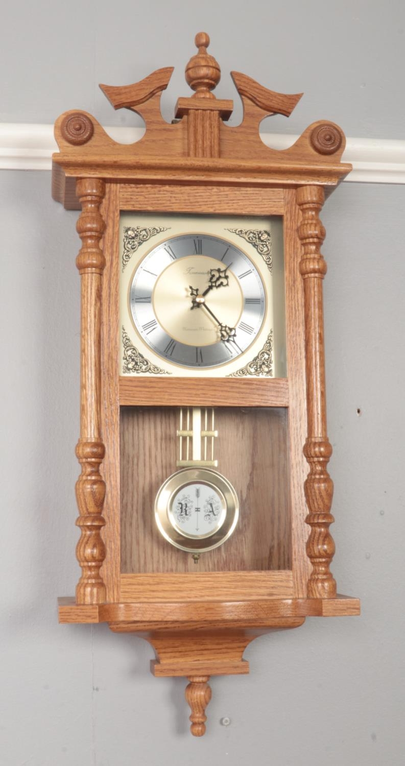 A modern oak Timemaster quartz wall clock. Westminster Whittington chiming.
