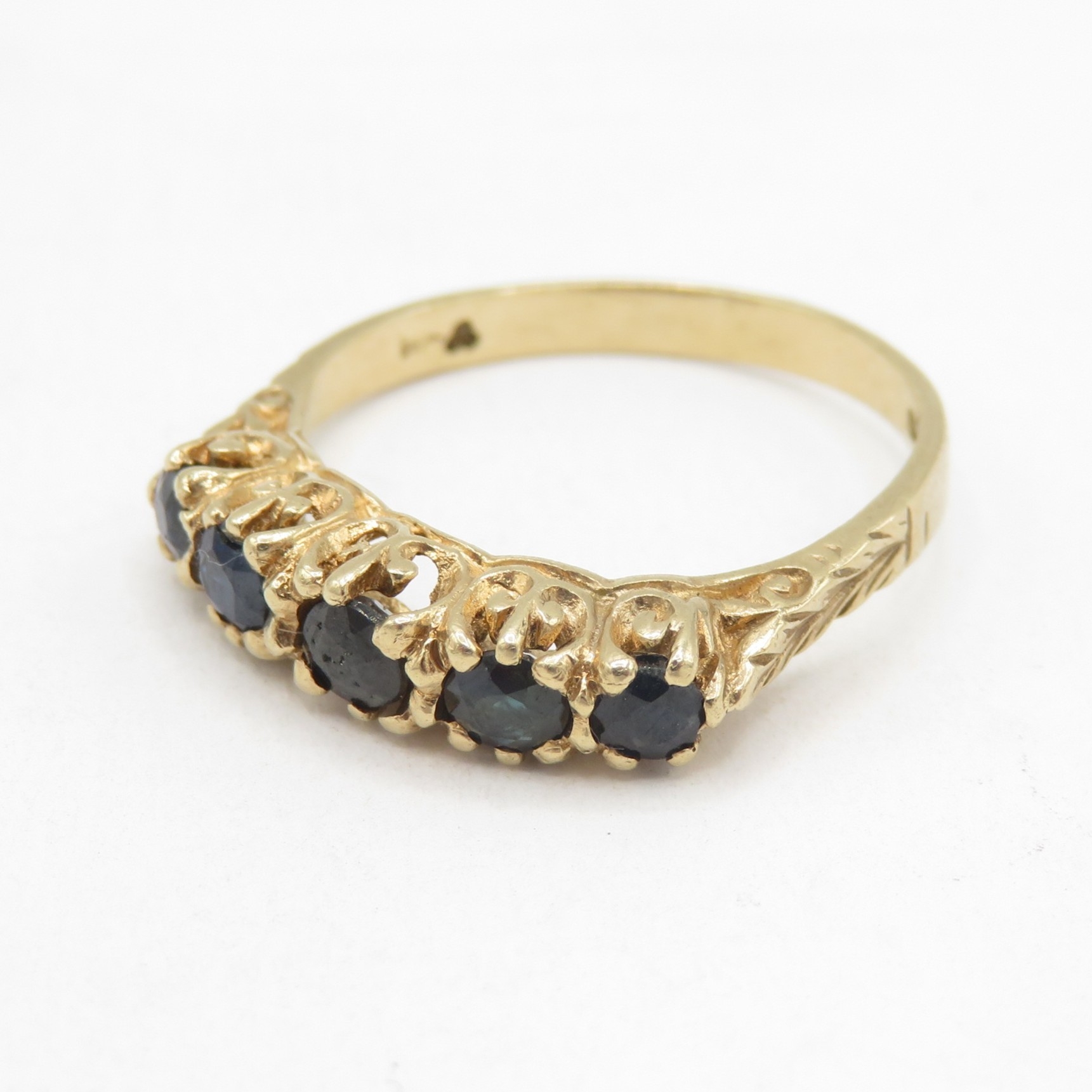 9ct gold sapphire five stone ring (2.3g) Size N