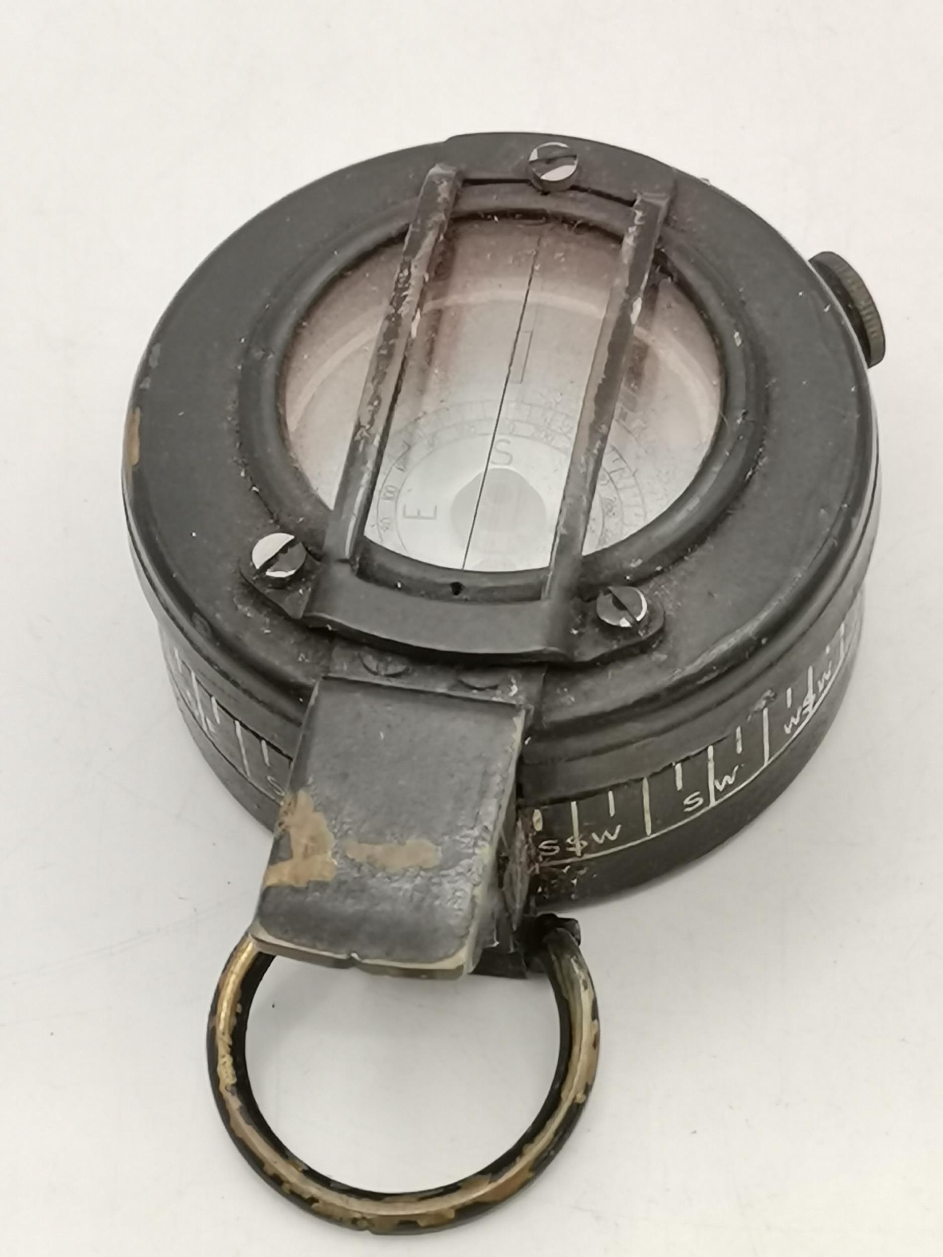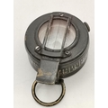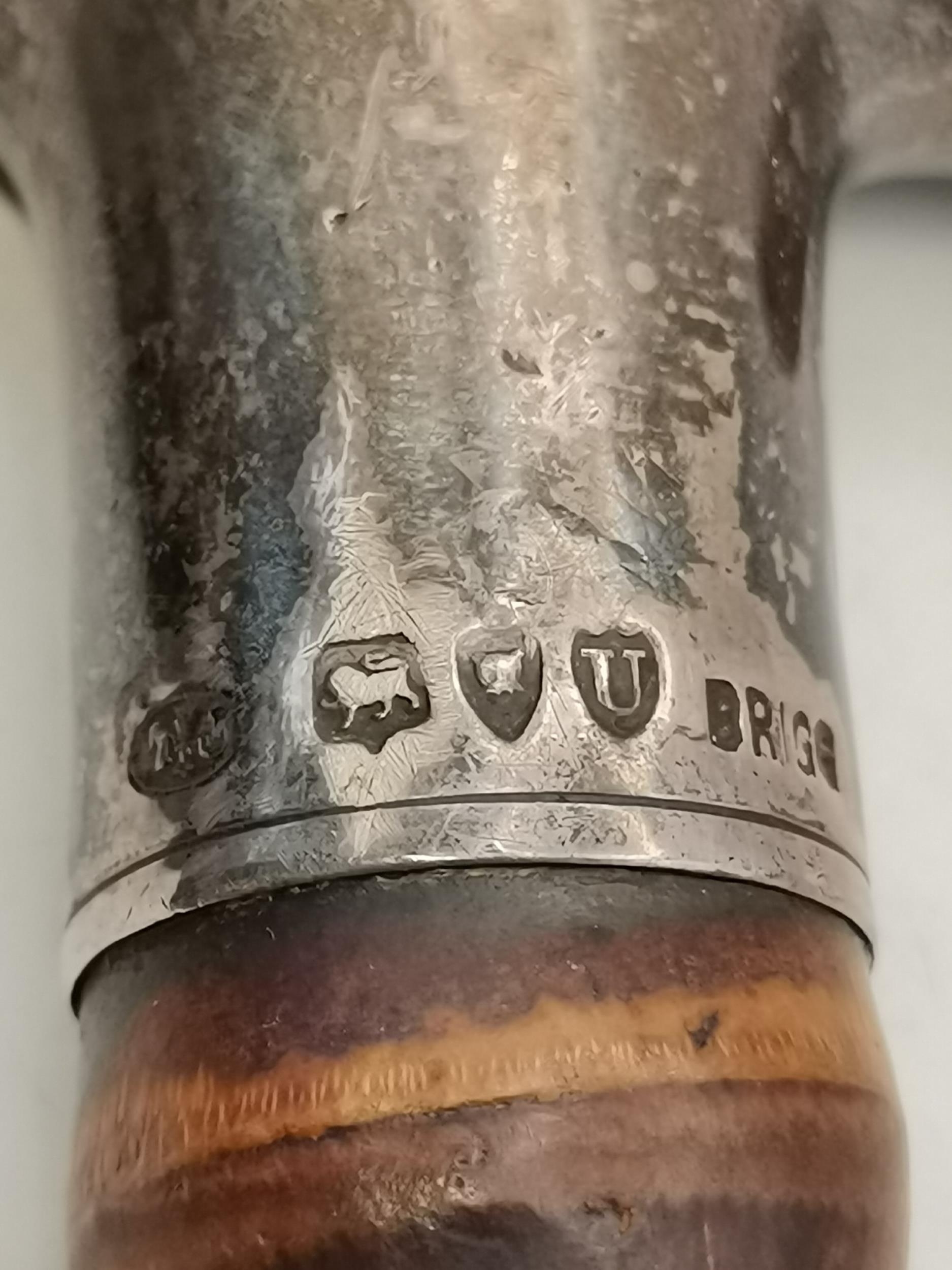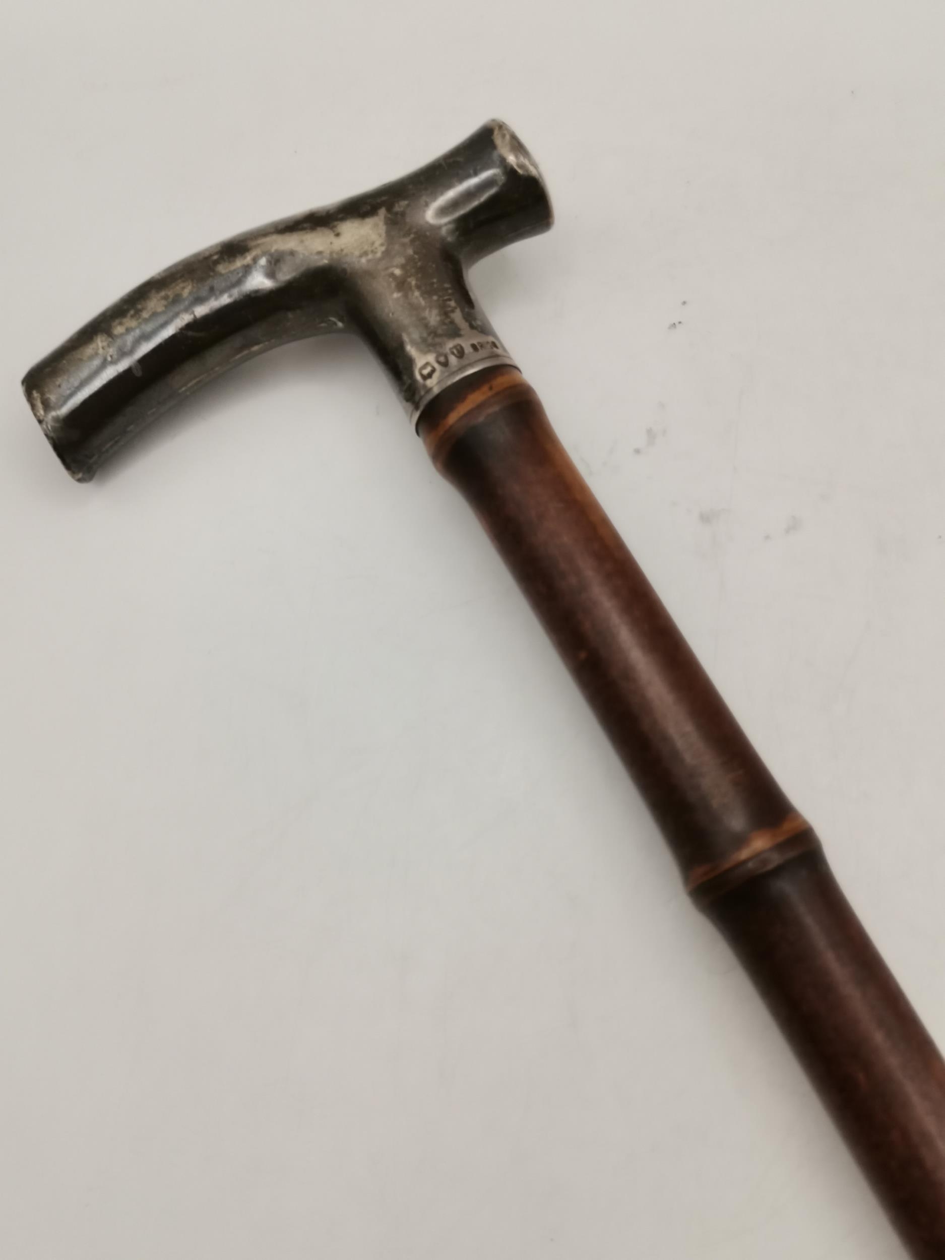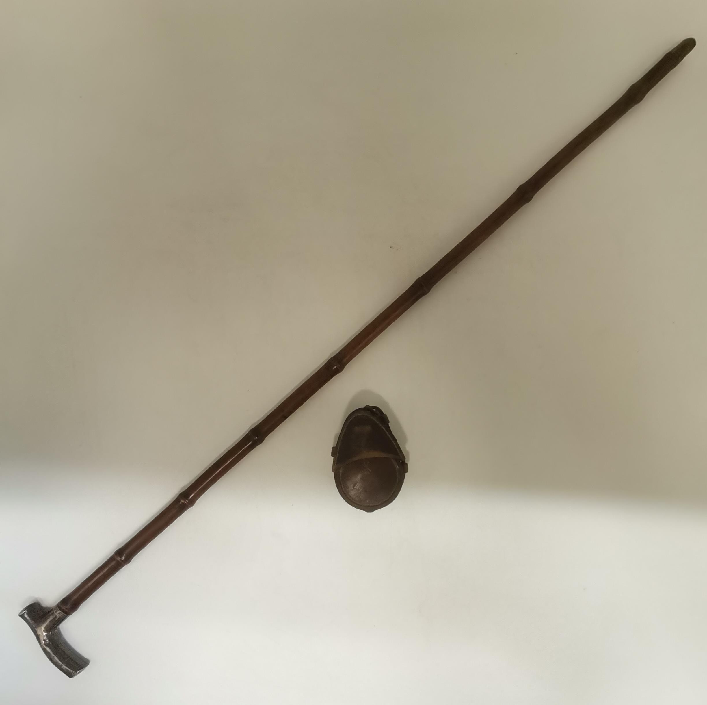Antique Bamboo walking cane with hallmarked silver crutch design handle makers stamp Brigg L93cm plus A British Army MKIII Prismatic marching compass used during second world war. Makers mark to base T.G & Co Ltd London complete with original leather case