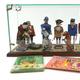 Collection of Larry The Lamb book illustrator's artist's models produced for Hulme Beaman, comprising painted and carved wood figures for Larry The Lamb, Dennis The Dachshund, The Mayor of Toytown, Ernest The Policeman, The Sentry, Captain Higgins, Mr Grouser and The Magician, housed in a glass case with wooden plinth base, together with two story books - The Theatre Royal and Punch and Judy, and Larry Lamb Loses His Fleece, the wooden plinth base 55cm in length