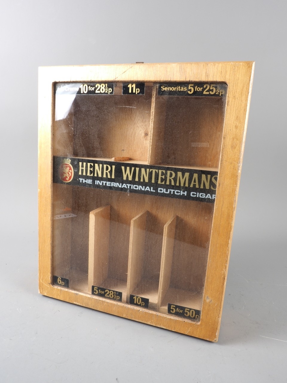 A Henri Wintermans "International Dutch Cigar" glass fronted advertisement cabinet, 12 1/2" x 10"