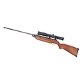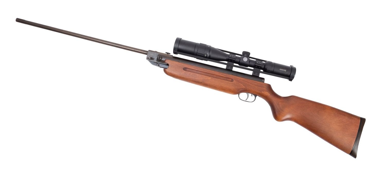 A Weihrauch model HW35 break barrel air rifle. .22 calibre on a wooden stock with plastic butt plate, length of pull 14'', fitted with a Hawke 3-9x40 scope within a canvas sleeve.
