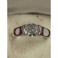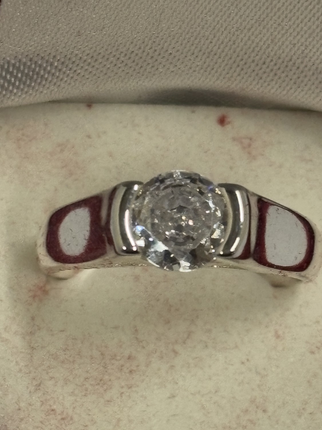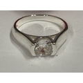 A MARKED 925 CUBIC ZIRCONIA SOLITAIRE RING. SIZE Q. IN A PRESENTATION BOX.