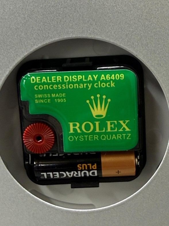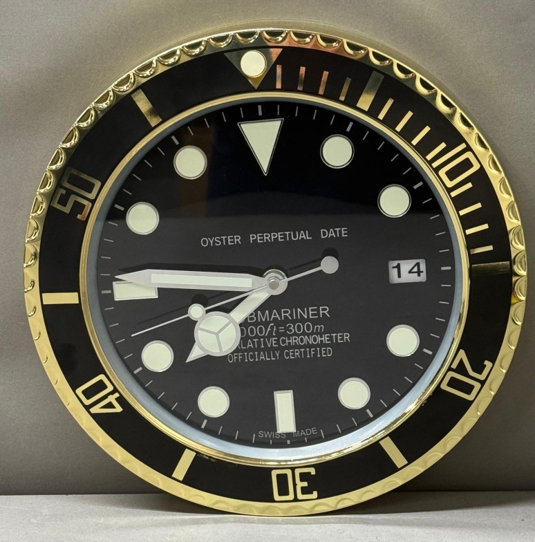 A Rolex-style dealer display metal wall clock with sweeping motion Dia34cm