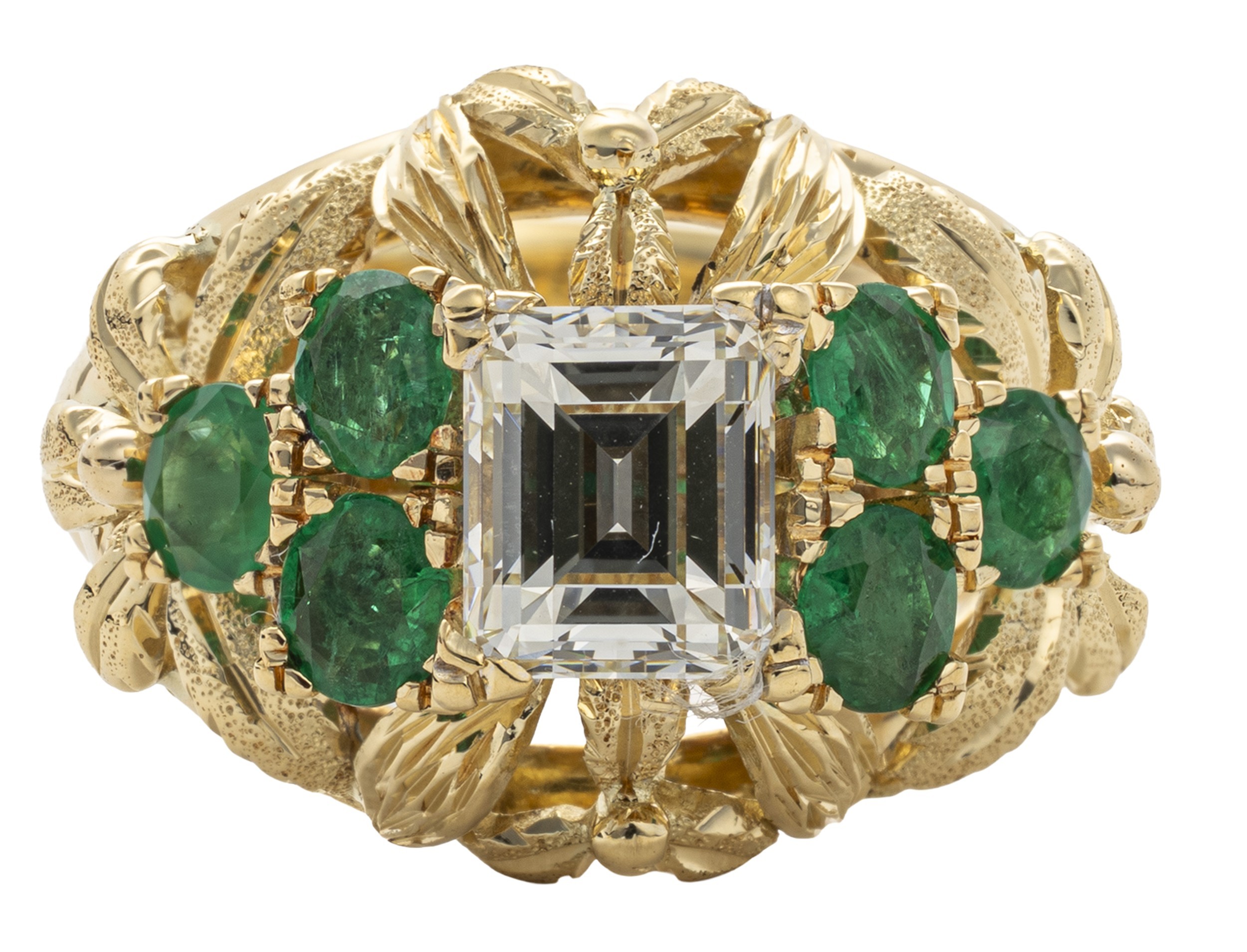 A CERTIFIED NATURAL DIAMOND AND EMERALD DRESS RING 2.03 CARA...